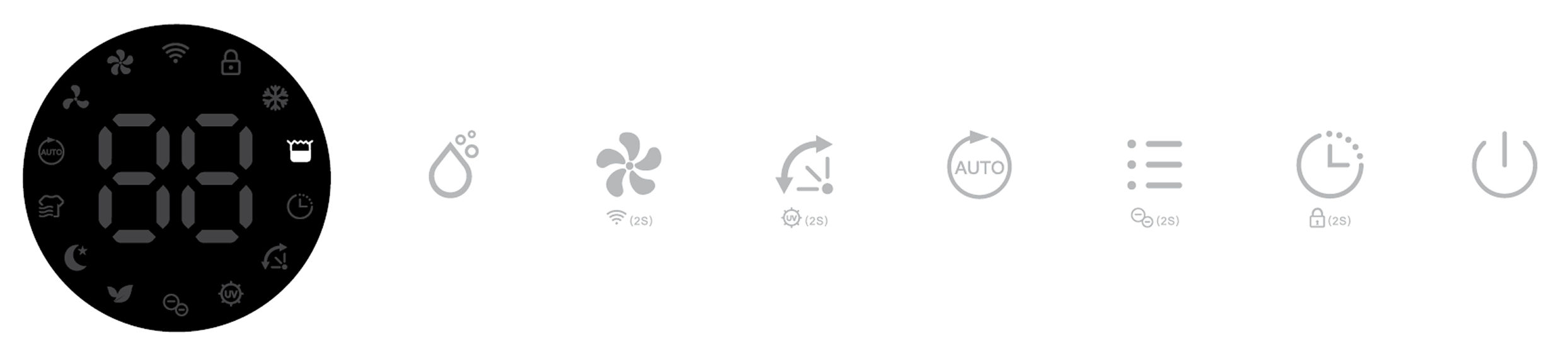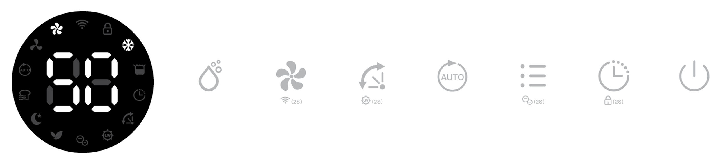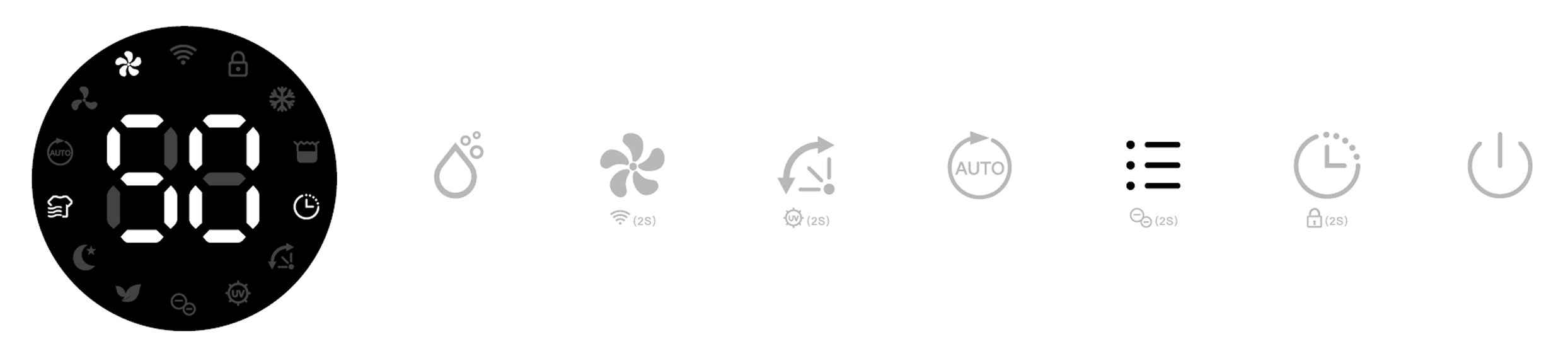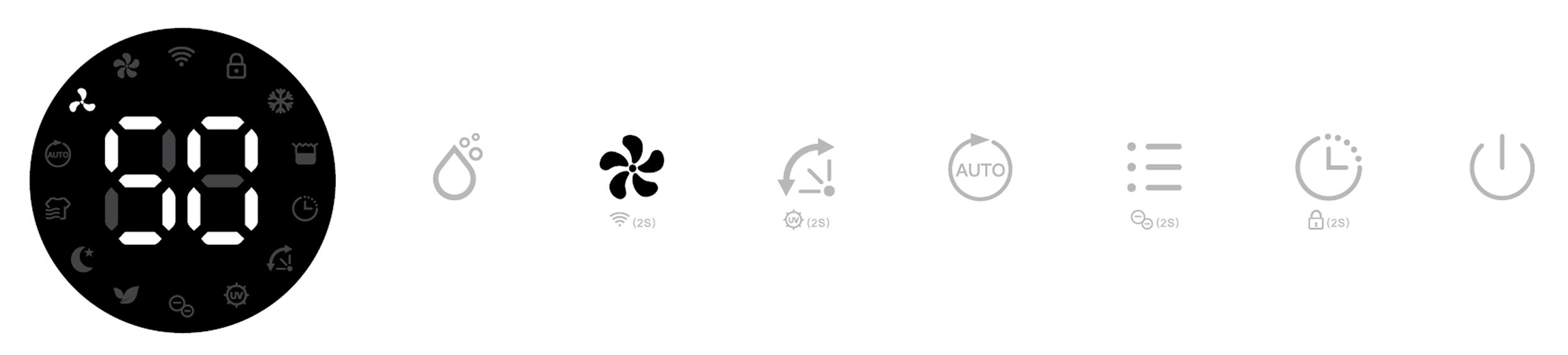 Its corresponding Air Purifying, Ionizer and UV indicators will be displayed on screen.