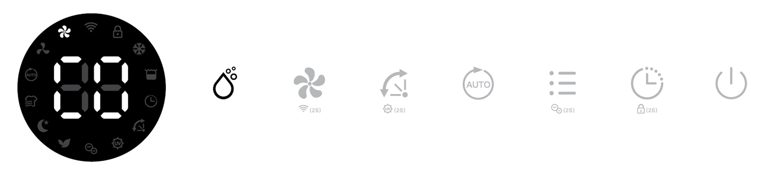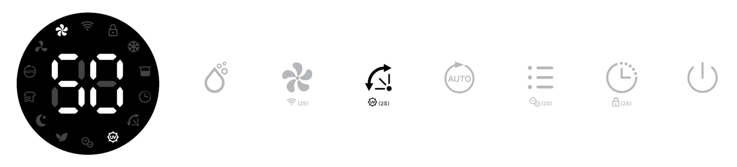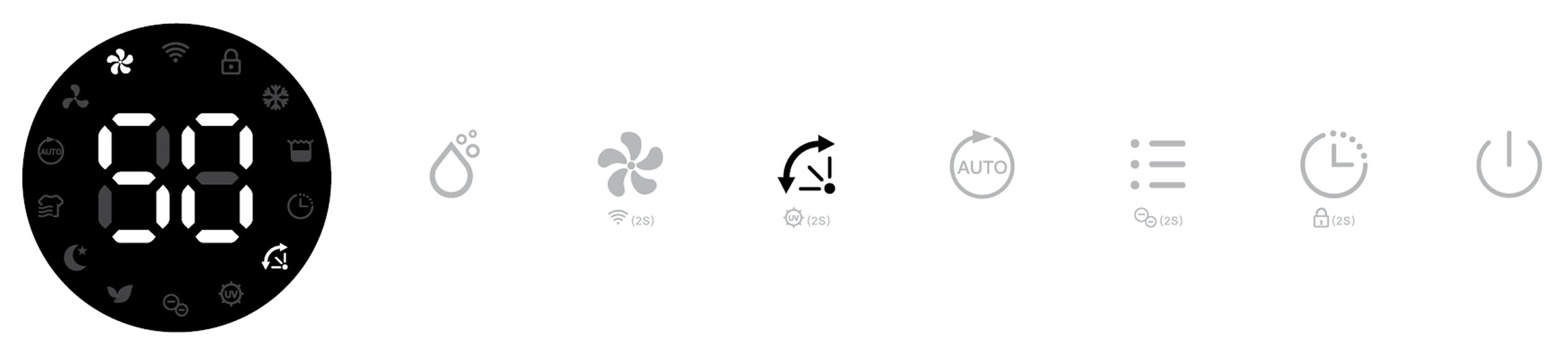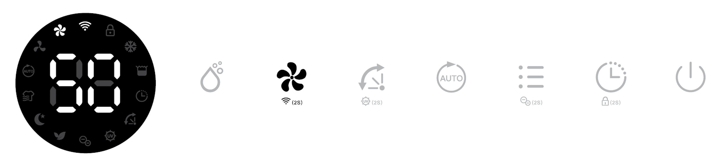 Its corresponding Air Purifying, Ionizer and UV indicators will be displayed on screen.