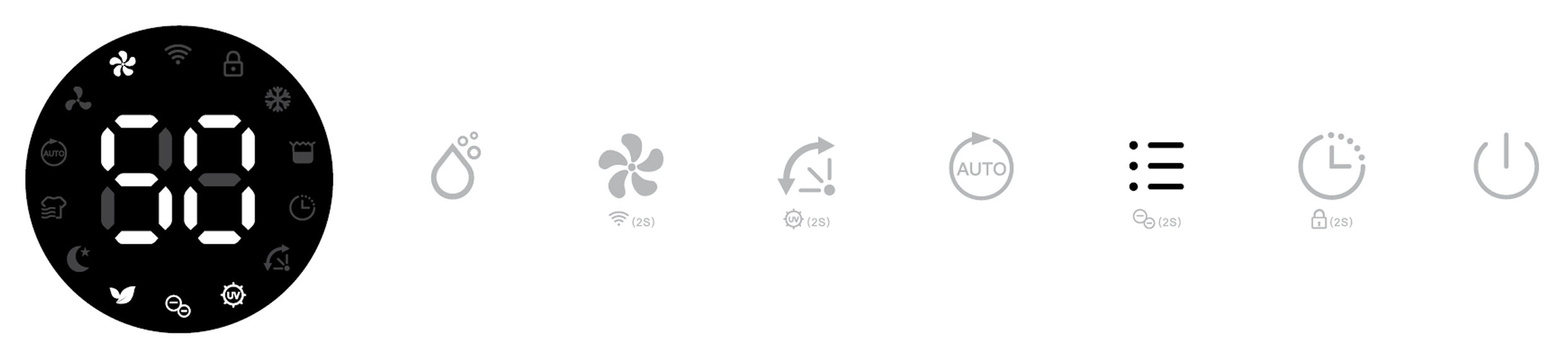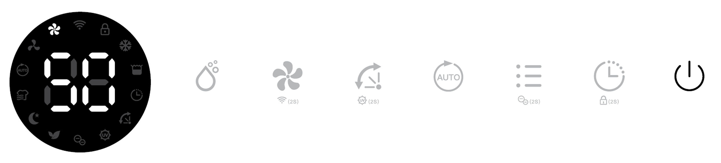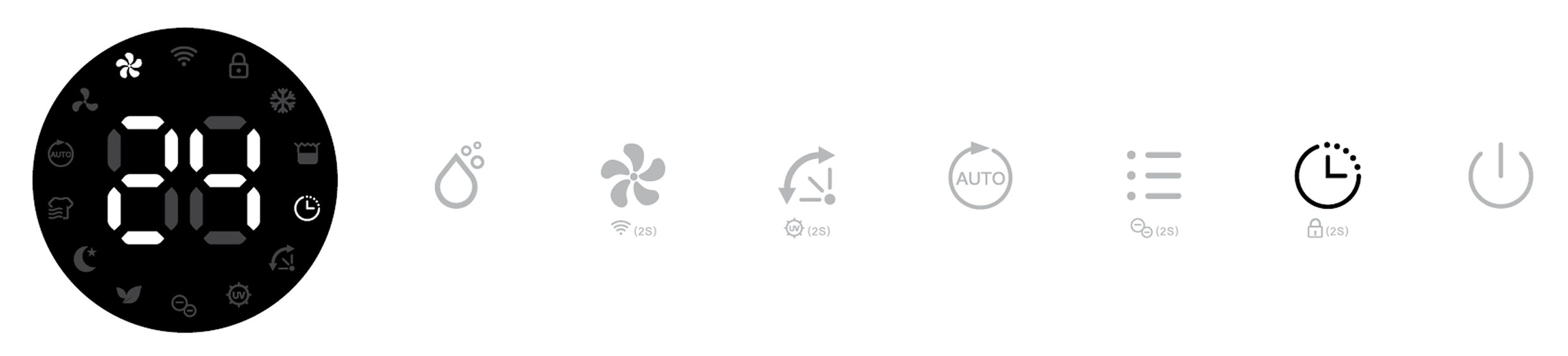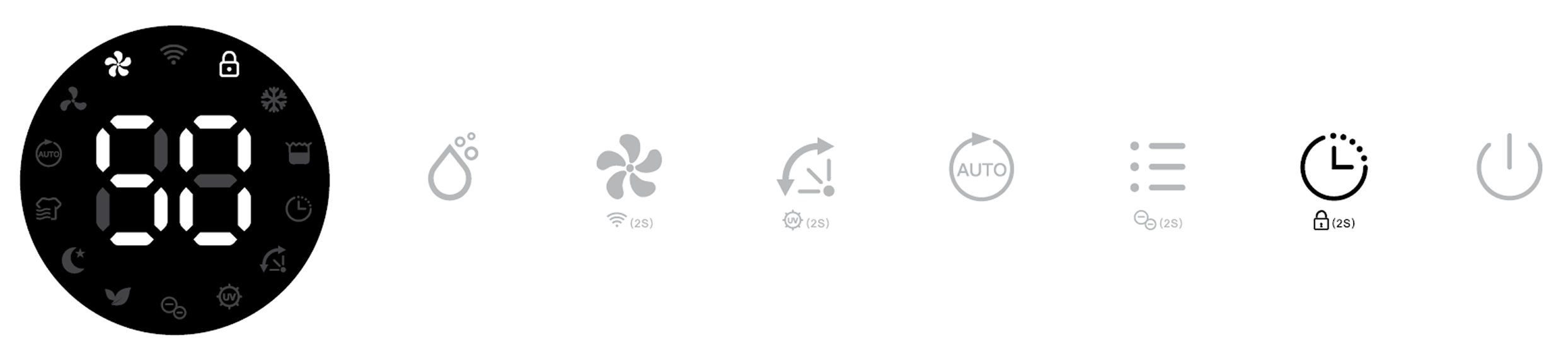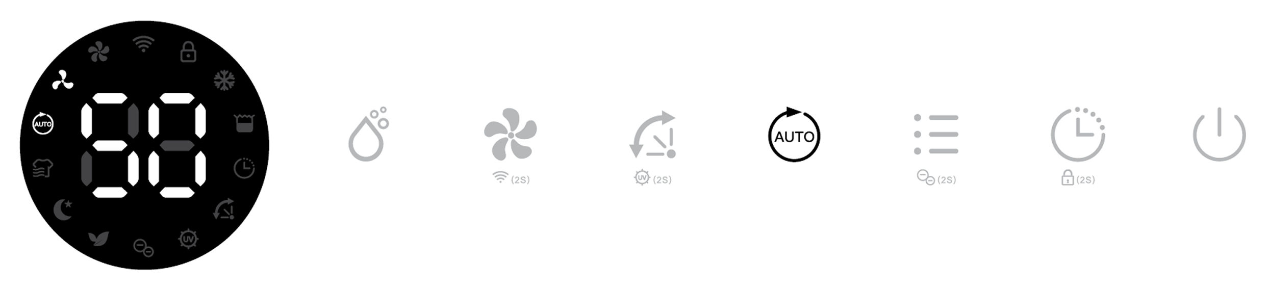 Its corresponding Air Purifying, Ionizer and UV indicators will be displayed on screen.