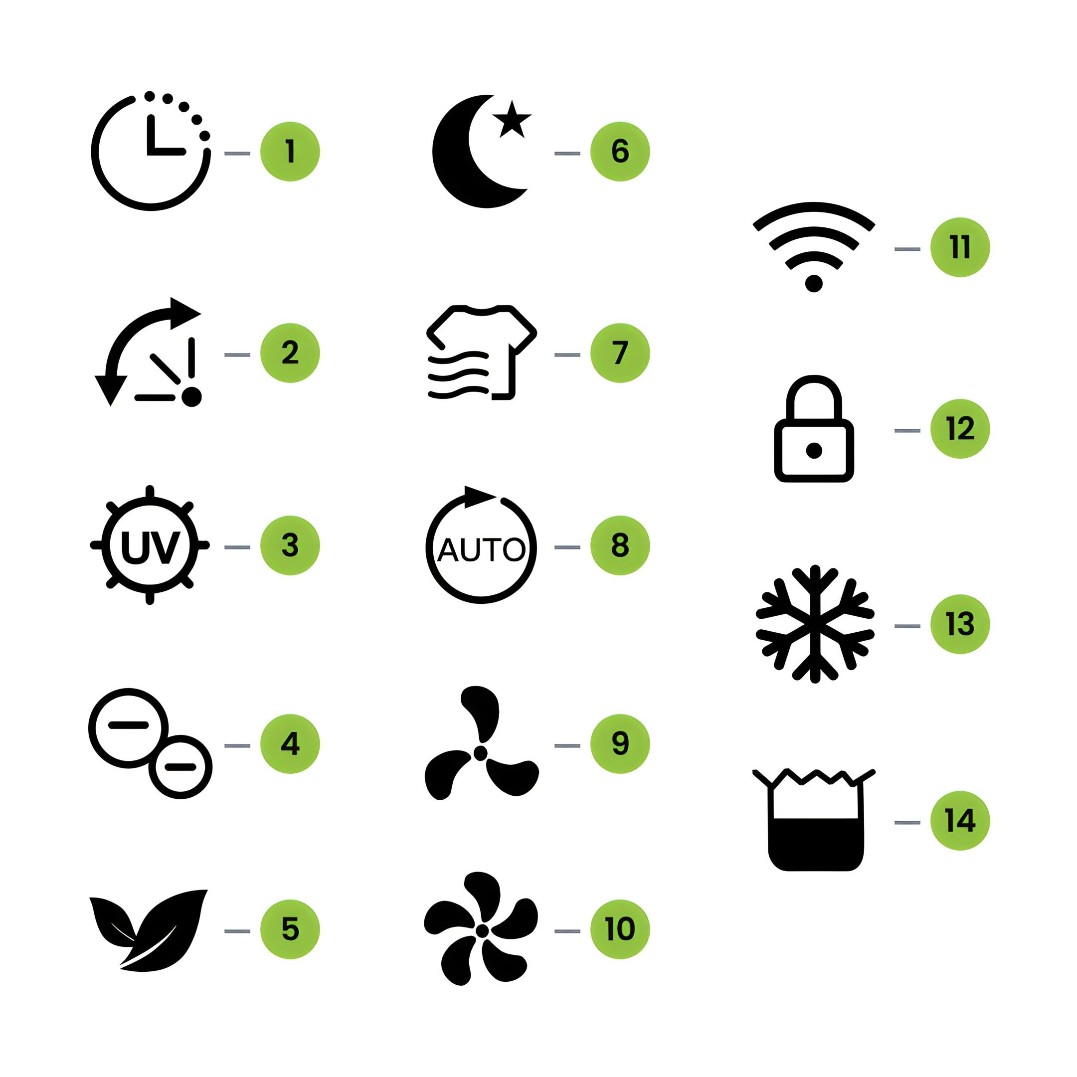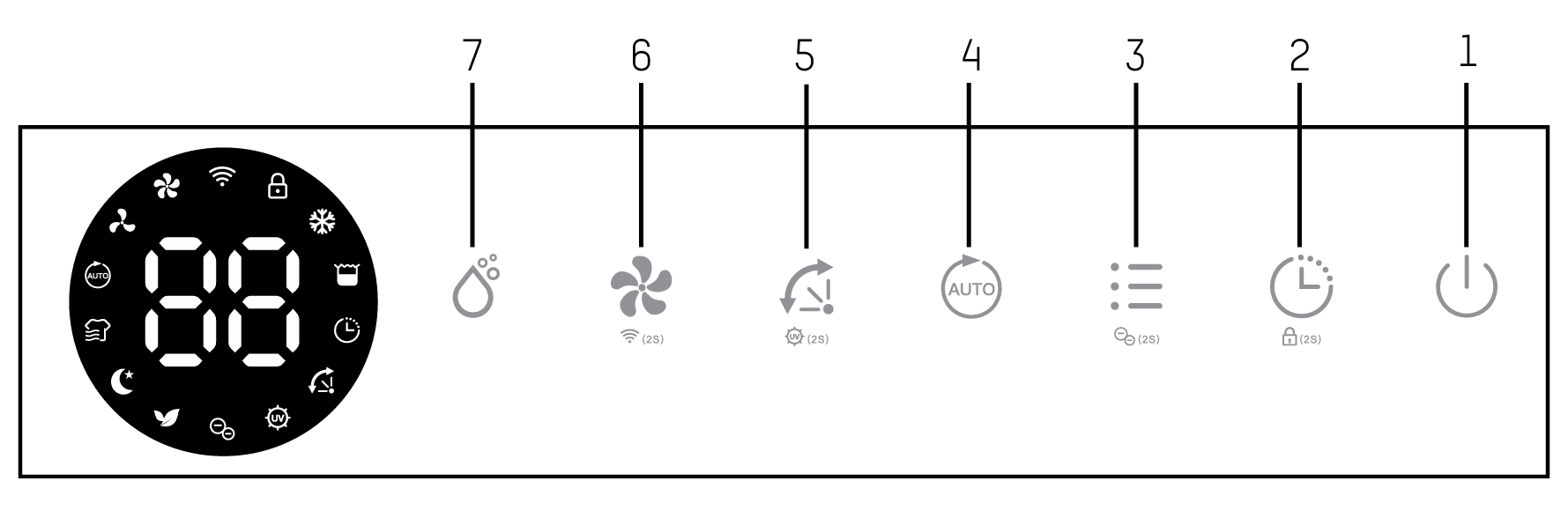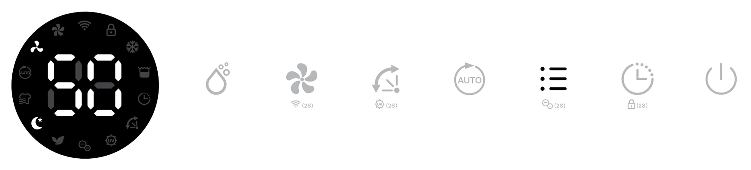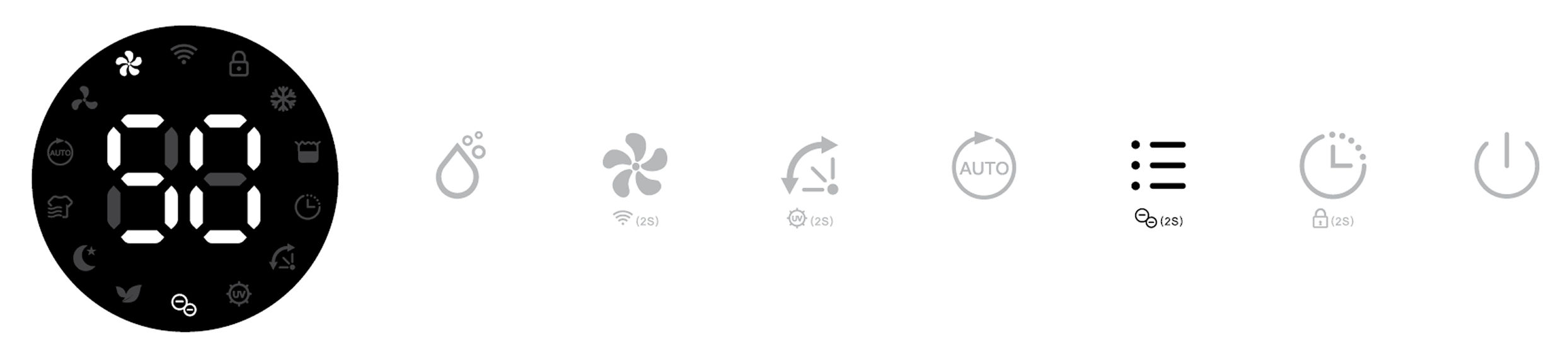Its corresponding Air Purifying, Ionizer and UV indicators will be displayed on screen.