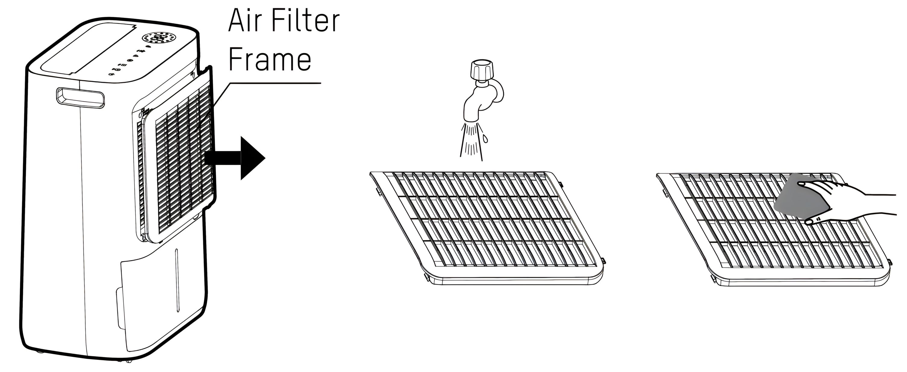 Do not use the dehumidifier without the air filter frame in place