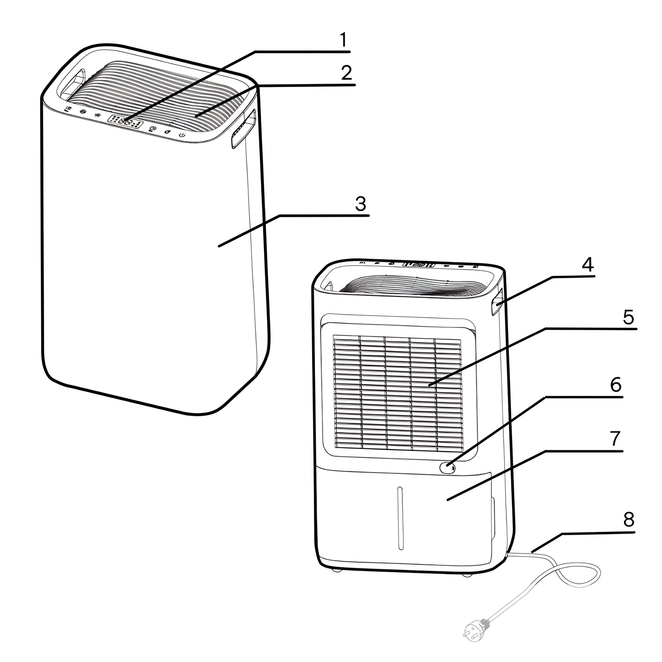 If the dehumidifier is switched off by a power cut, it will automatically switch back on once the power is restored.