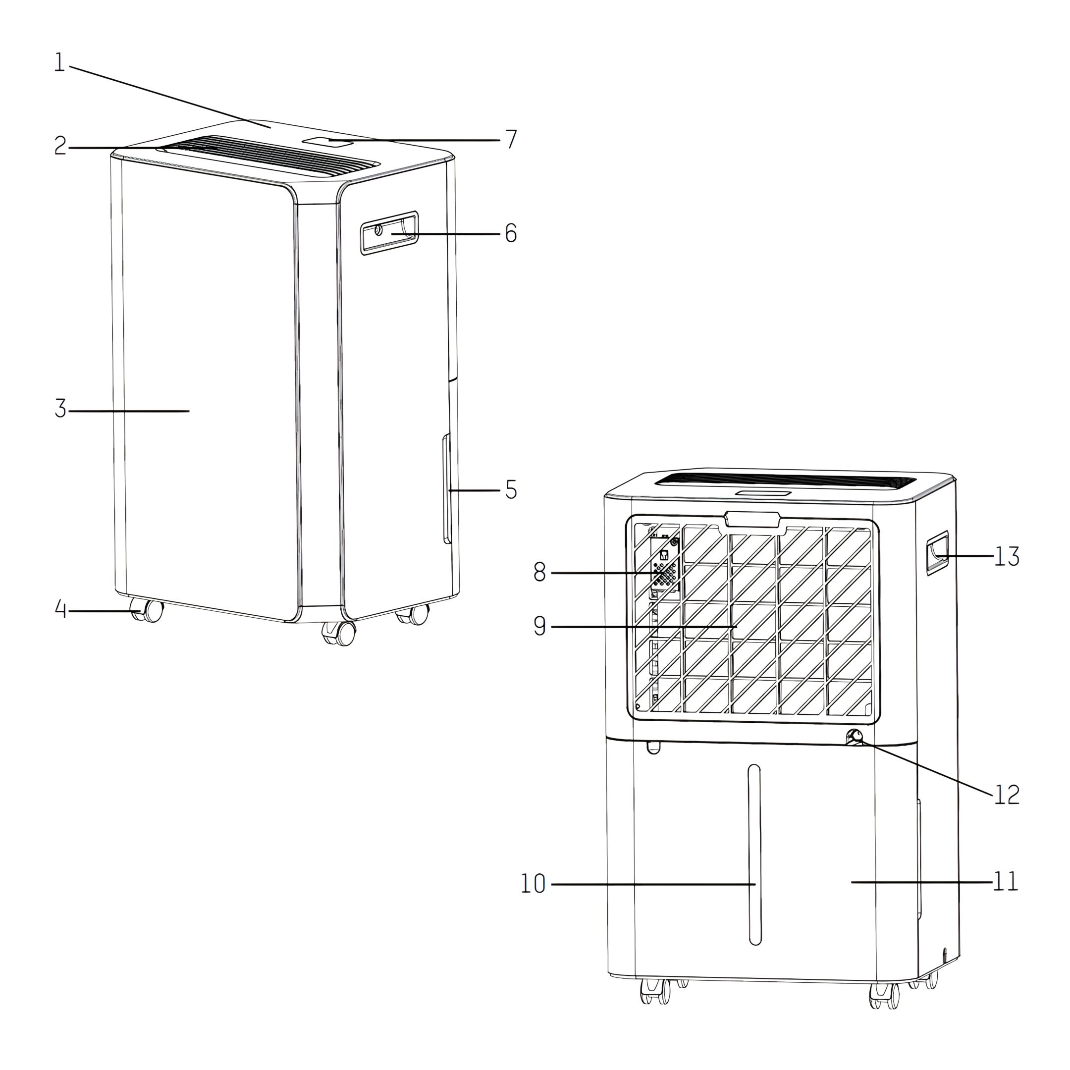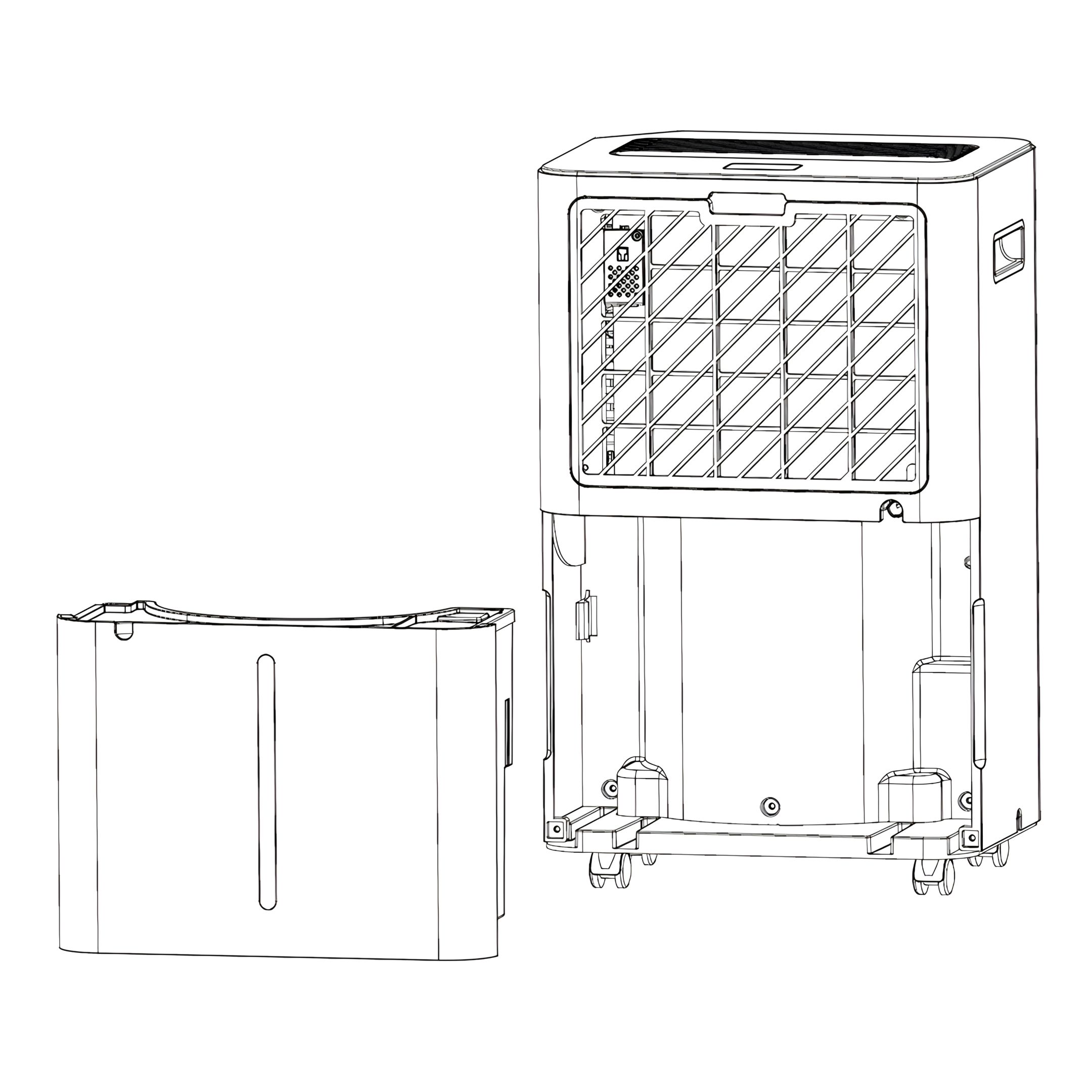 Instructions by ecofort ecoQ DryAir 20L EssentialStep-by-step guide for setting up, using, and maintaining your ecoQ DryAir 20L Essential dehumidifier. Covers modes, drainage, cleaning, safety, troubleshooting, and more for optimal daily use and long-term care. Product Information ecoQ DryAir 20L EssentialThis powerful dehumidifier combines simple design, intuitive operation and innovative technology at an unbeatable price-performance ratio. The ecoQ DryAir 20L Essential focuses on the essentials and offers everything you expect from a high-quality dehumidifier. The intuitive control panel with LED display makes operation child's play. The integrated functions ensure maximum convenience. With its impressive dehumidification capacity of up to 20 liters per day, the ecoQ DryAir 20L Essential effortlessly tackles the challenges of humid rooms up to 50 m². So you can always enjoy a pleasant and healthy indoor climate, free from moisture and mold growth
