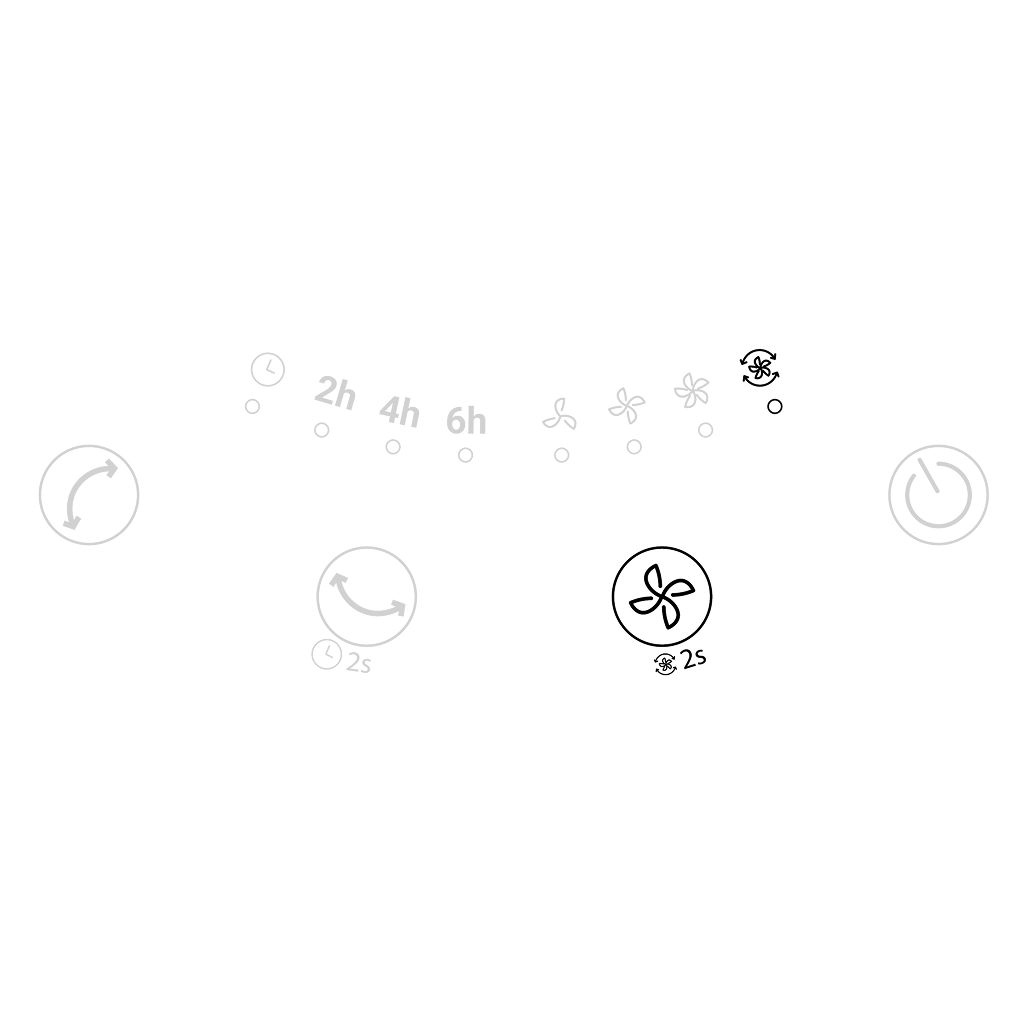 - While operating, touch and hold for 2 seconds to enter Circulation Mode. In this mode, the fan runs at the highest speed with both horizontal and vertical oscillation activated.
