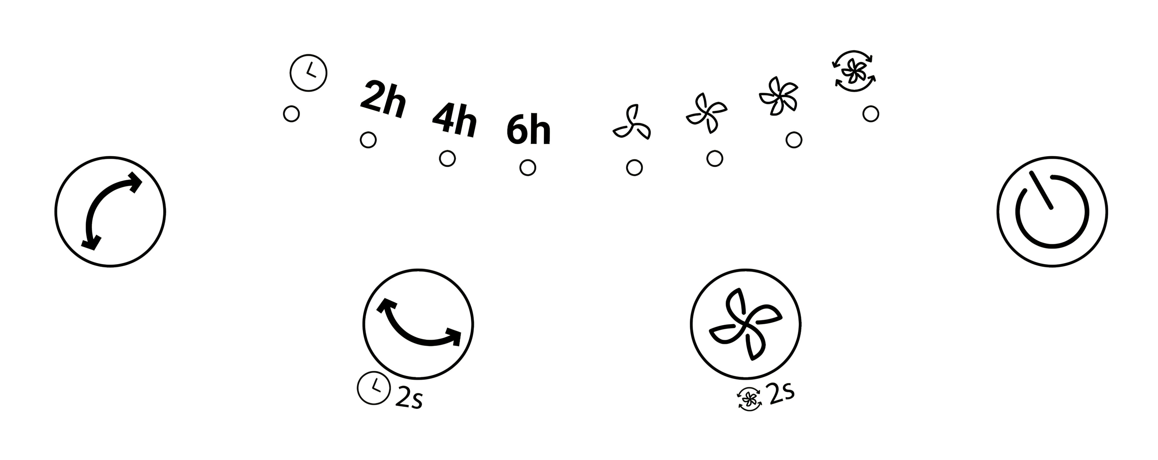 - Timer On – While the fan is operating, touch and hold for 2 seconds to activate.