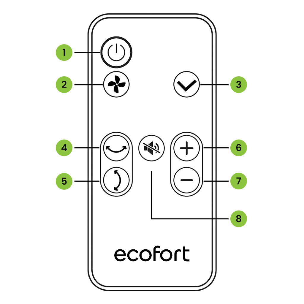 - Mute Button: Turn off or turn on the fan’s beep sound