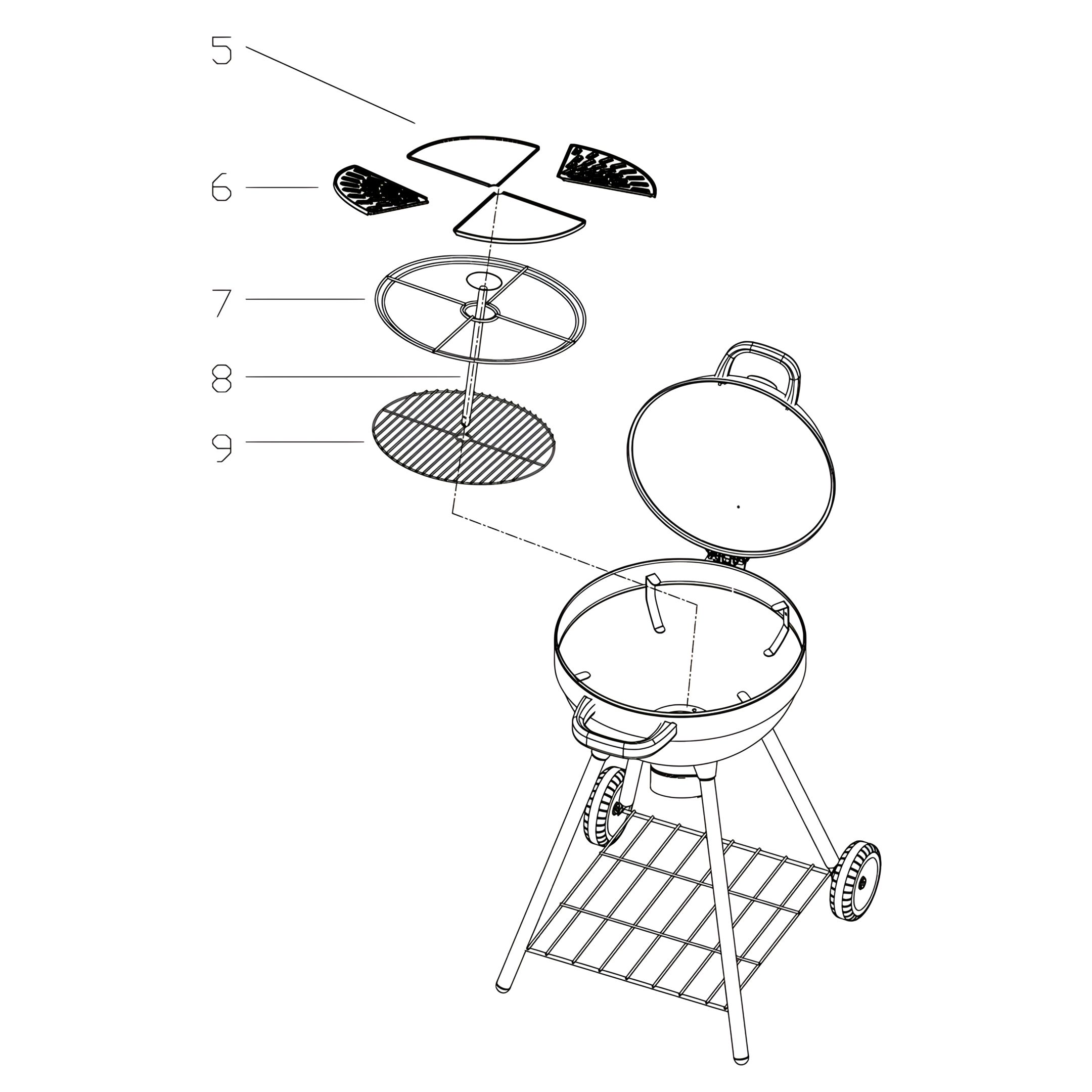 Place the Cooking Grill Grid (9) on top, ensuring it sits firmly within the grill frame.