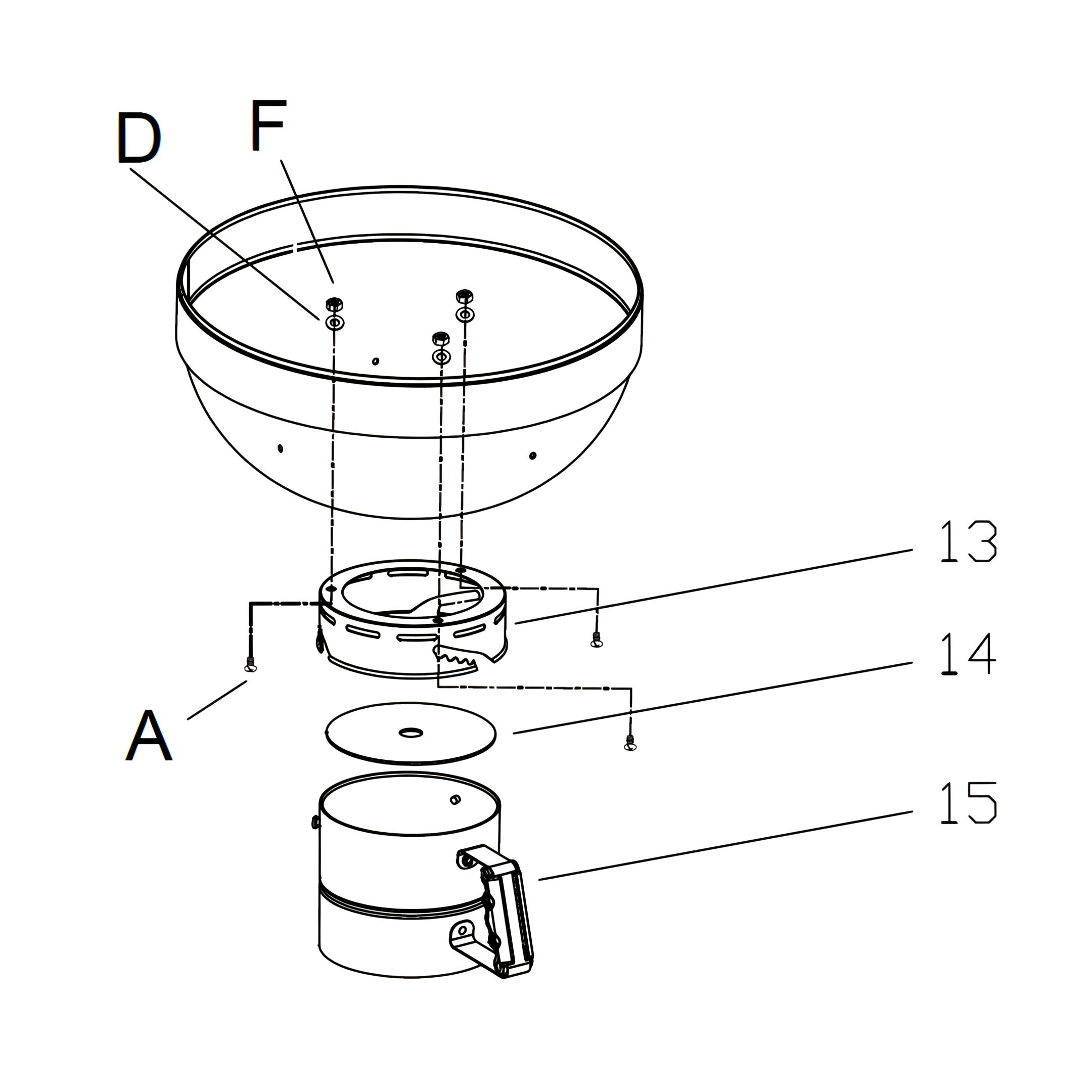 Place the Gasket Ring (14) and the Ash Collector (15) beneath the vent assembly