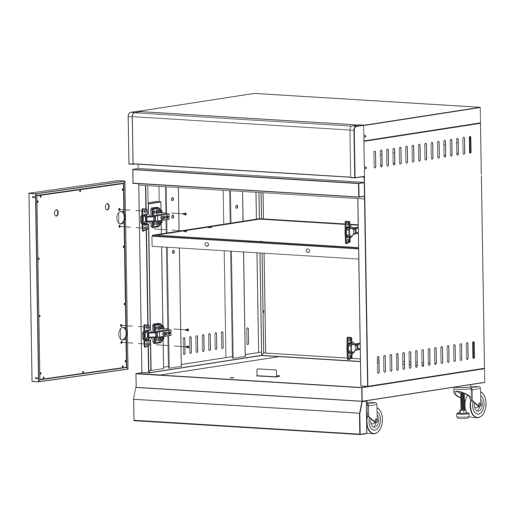 Insert the screws from the inside of each door.