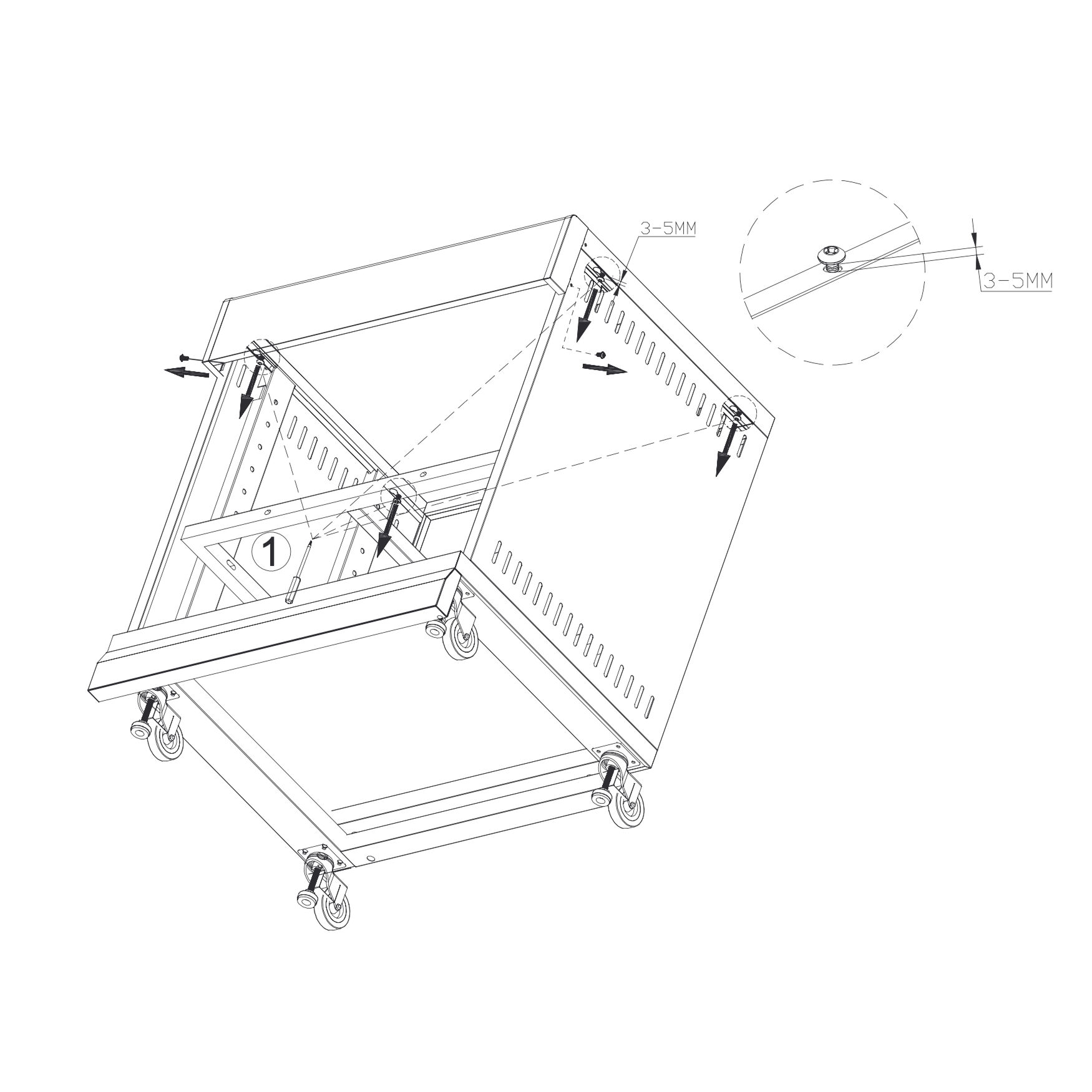 Use the original screws indicated to re-fix the table top.