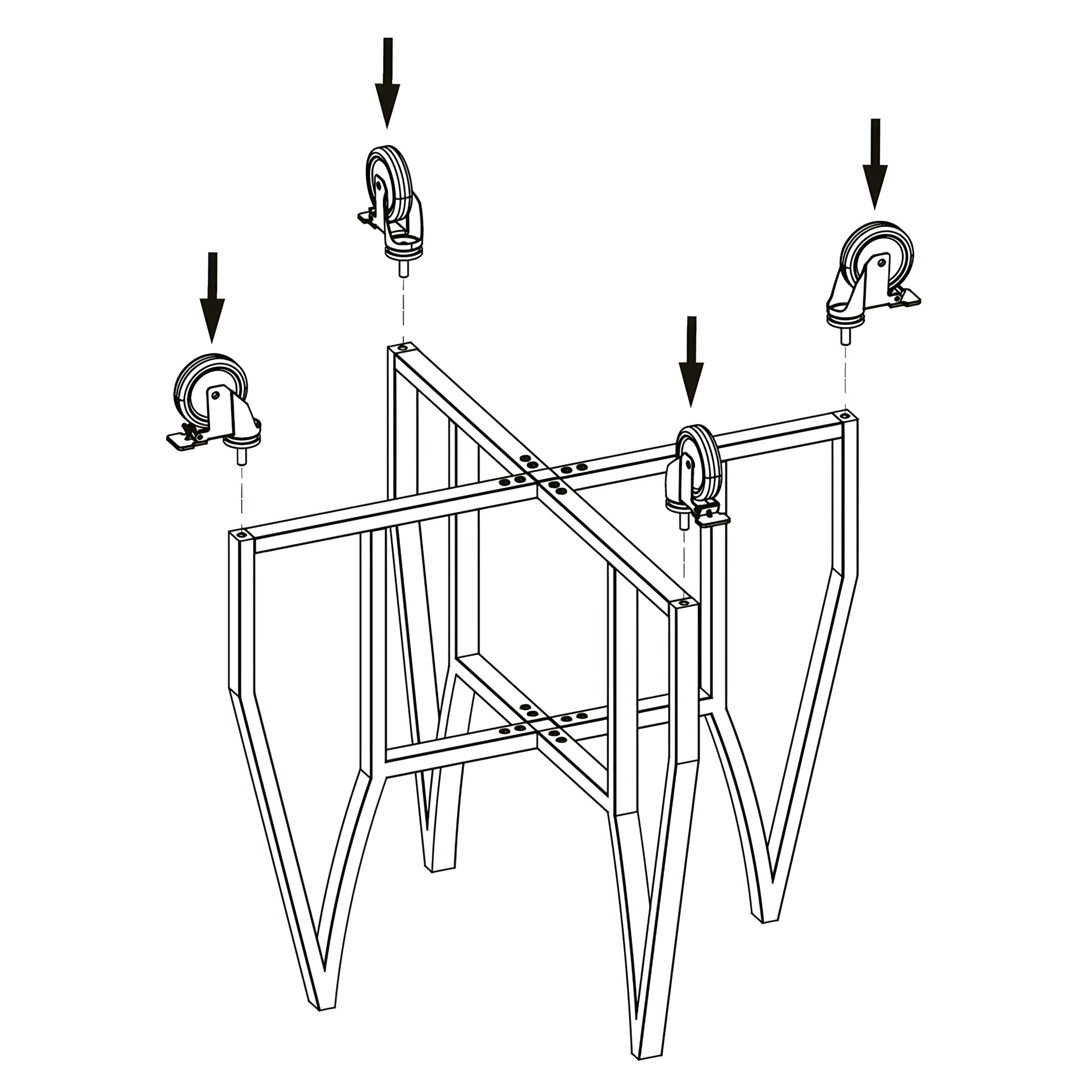 Attach the Casters (6) to the underside of each corner.