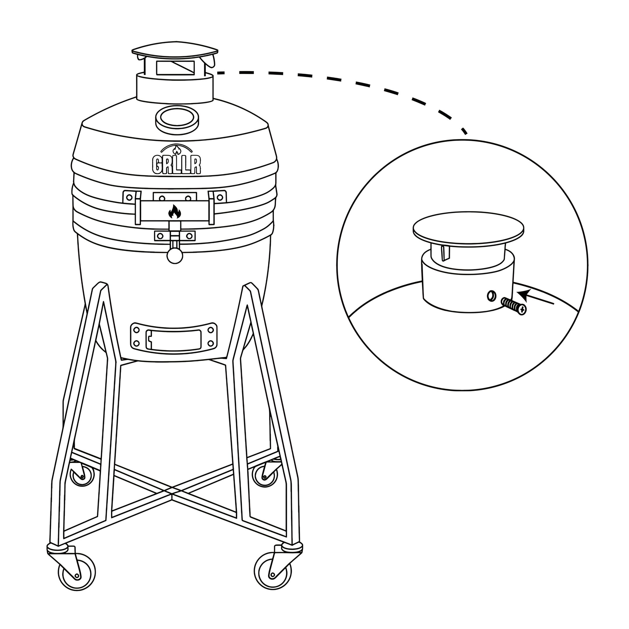 Position the Top Vent (1) onto the opening at the top of the Ceramic Kamado Top (3.3).