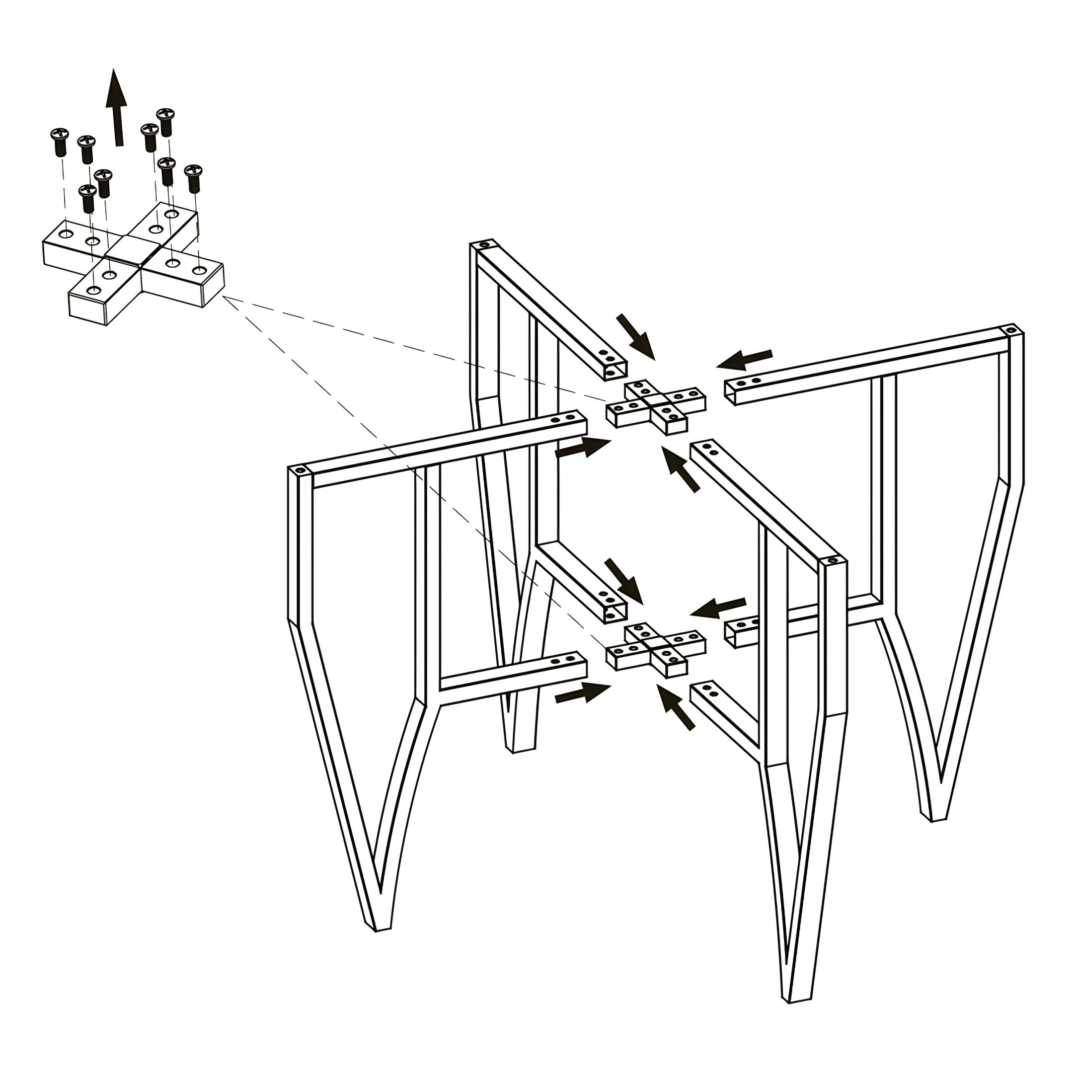 Align the Trolley Leg Connectors (5) in the center where the legs meet.