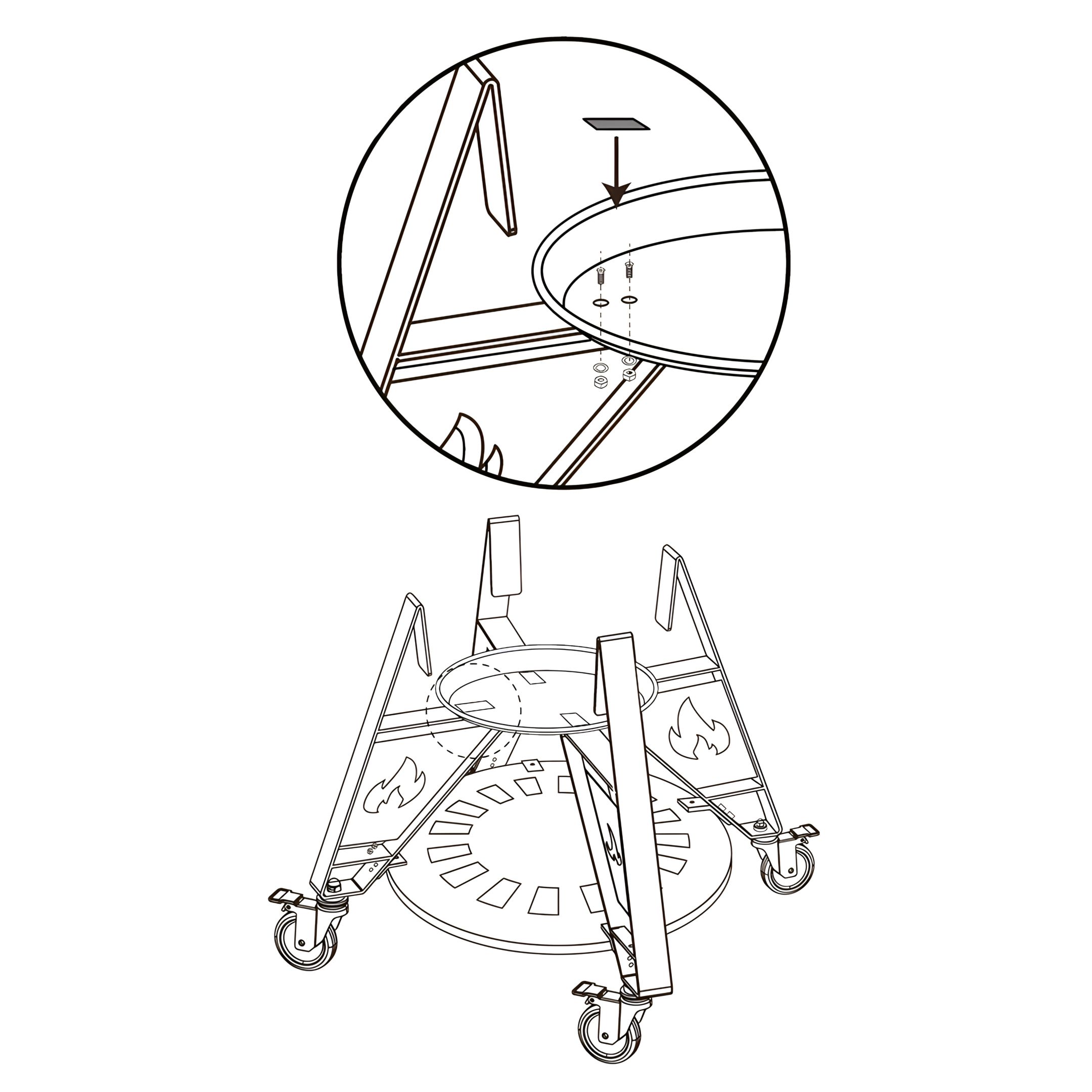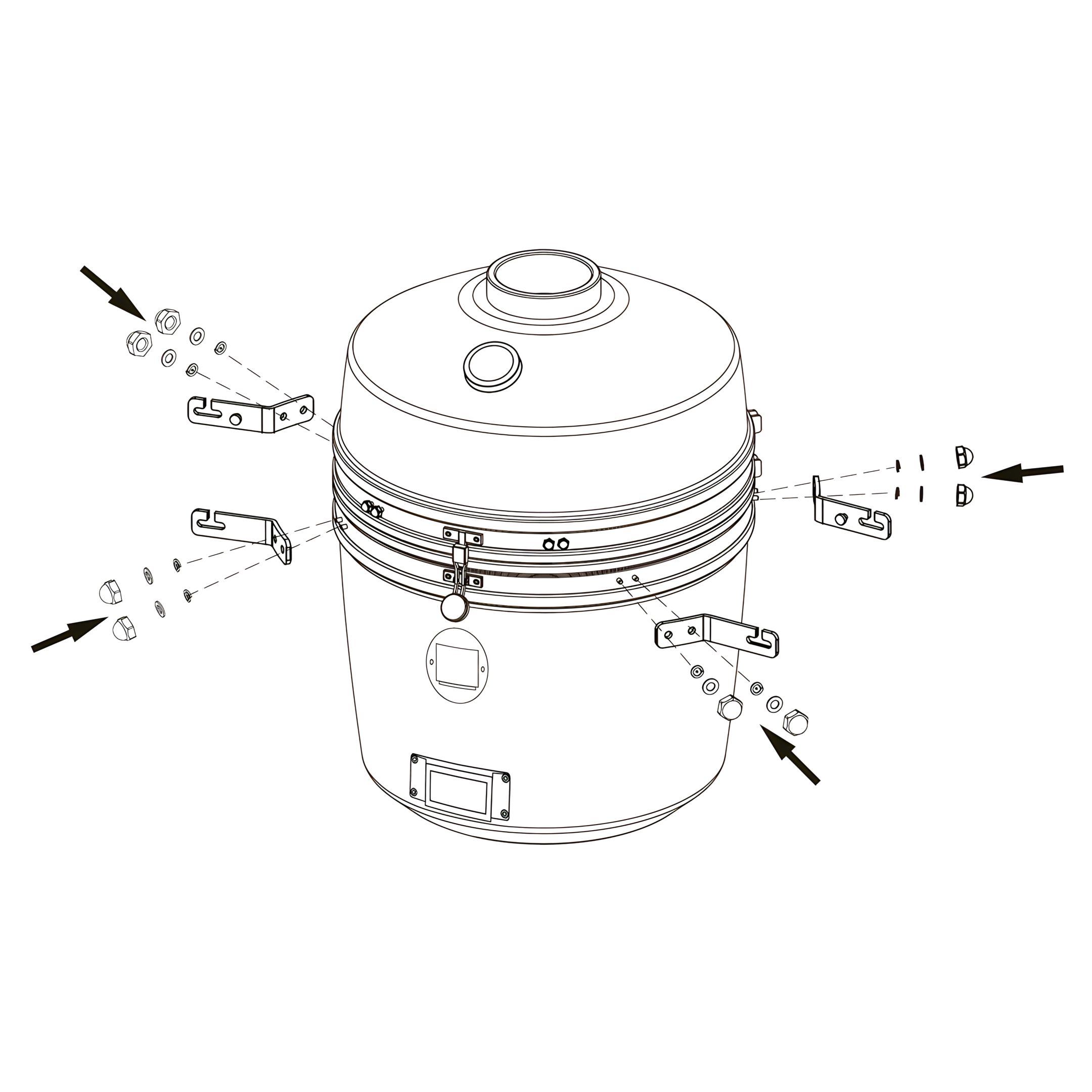 Align the holes in the brackets with the mounting points on the kamado body.