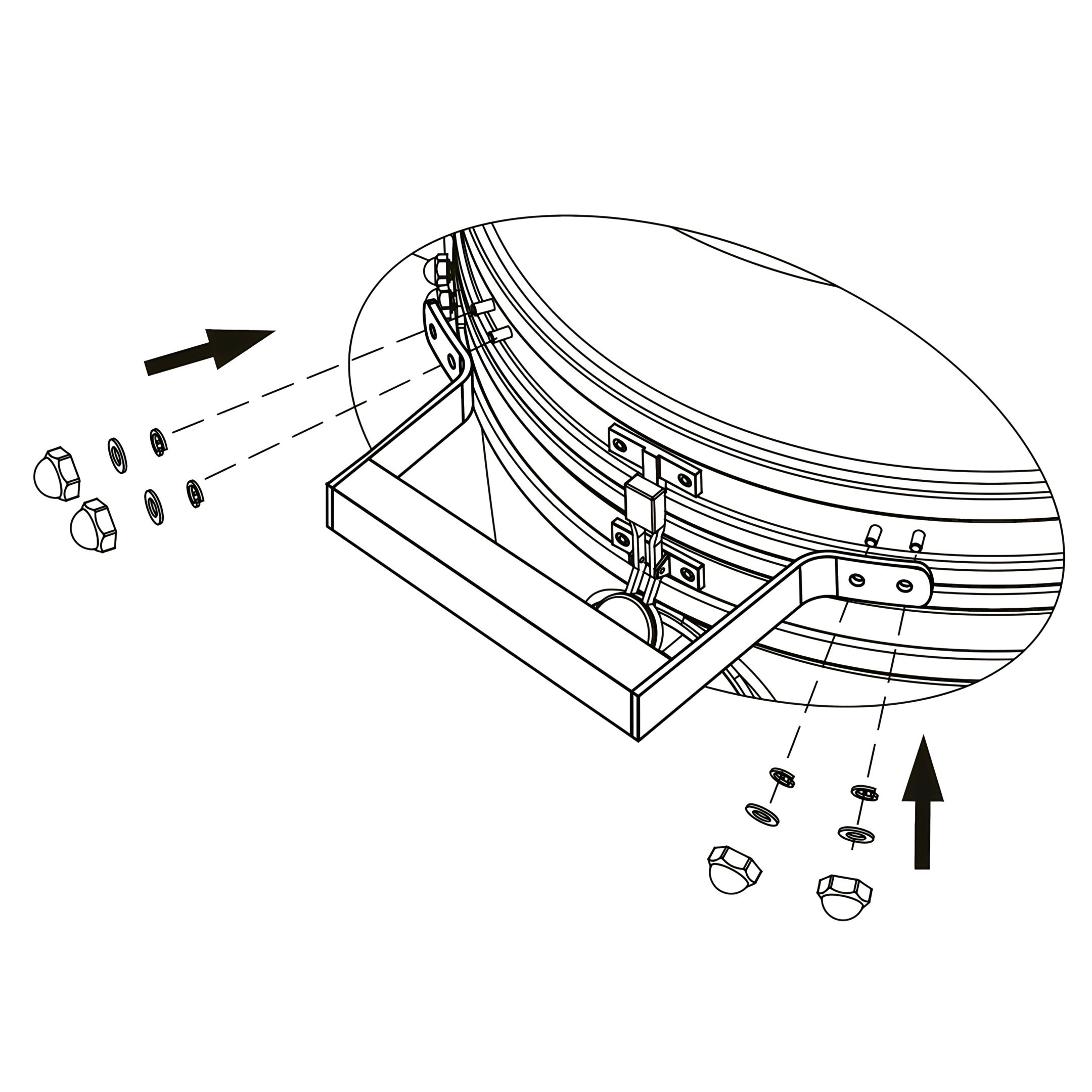 Secure each support using a SpringWasher, Washer and Cap Nut . Tighten all connections evenly.