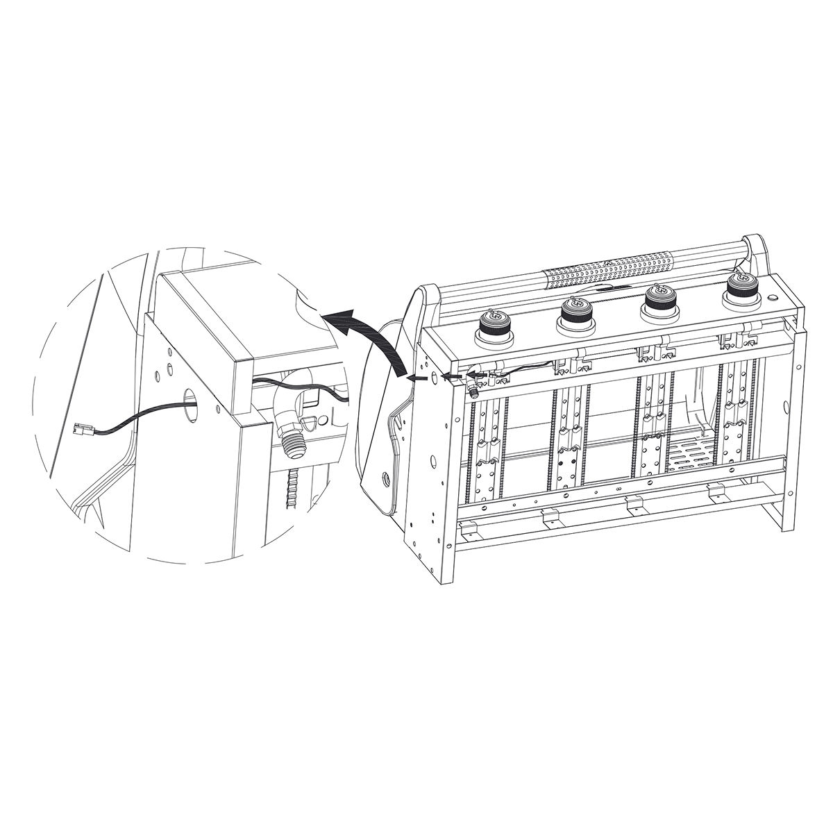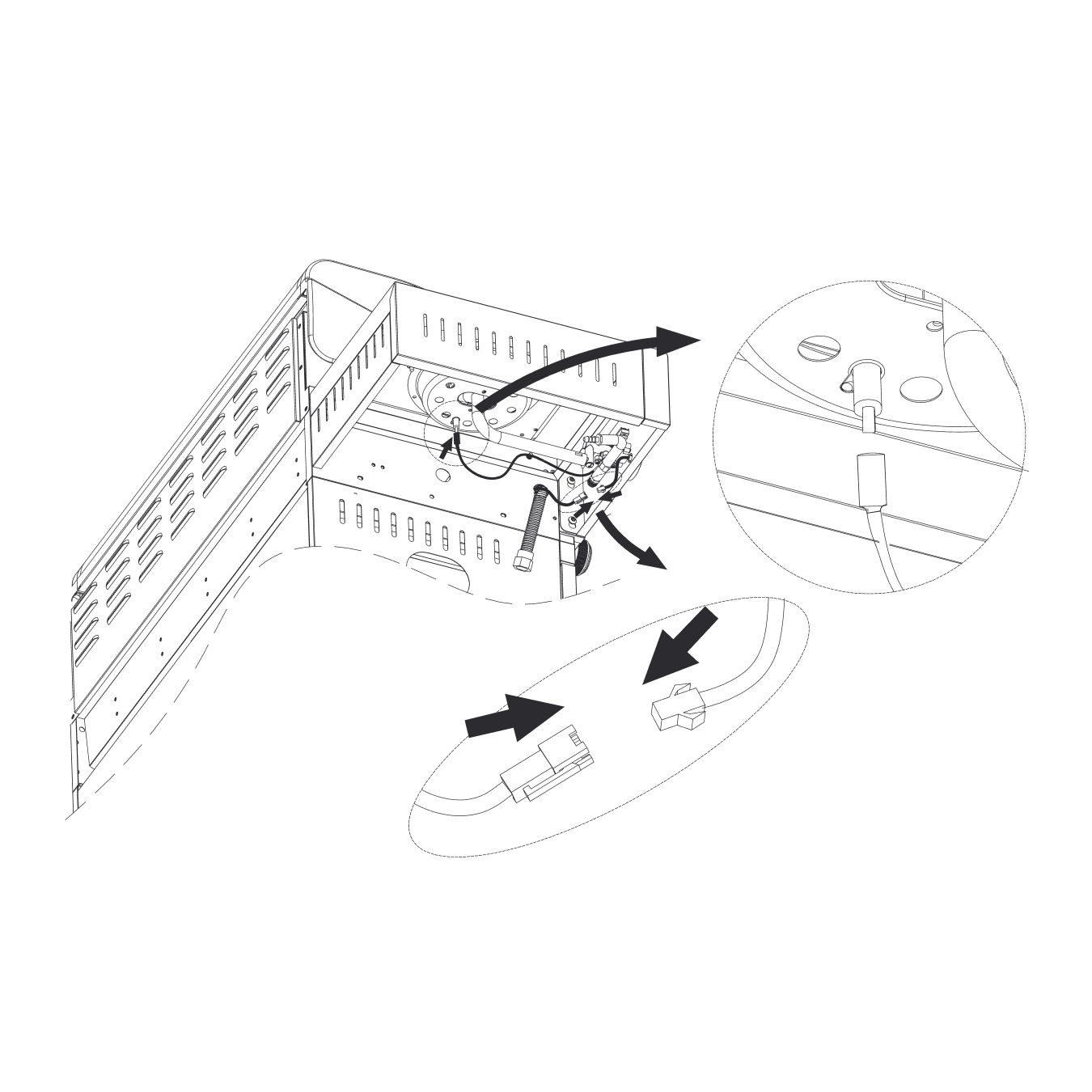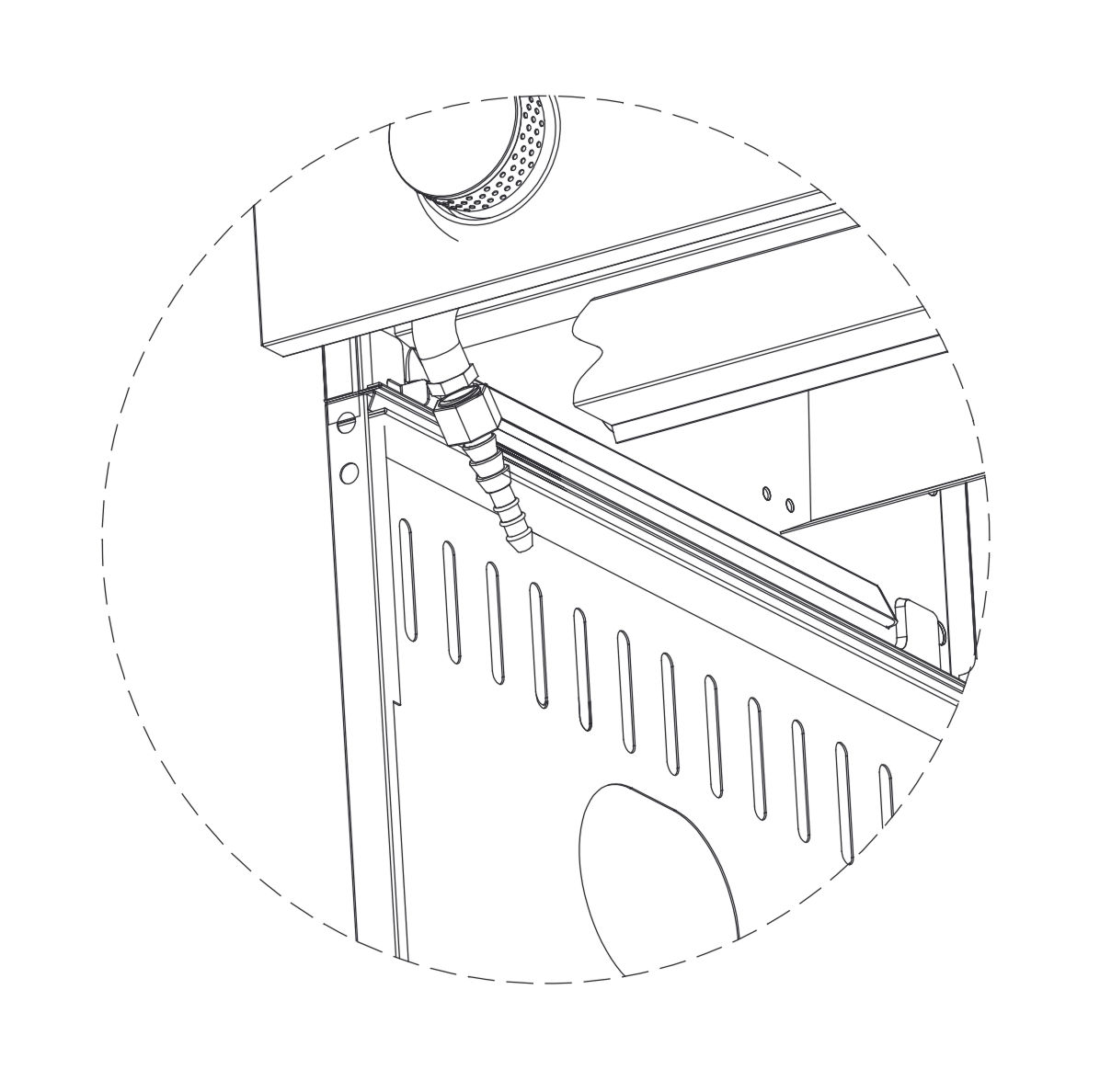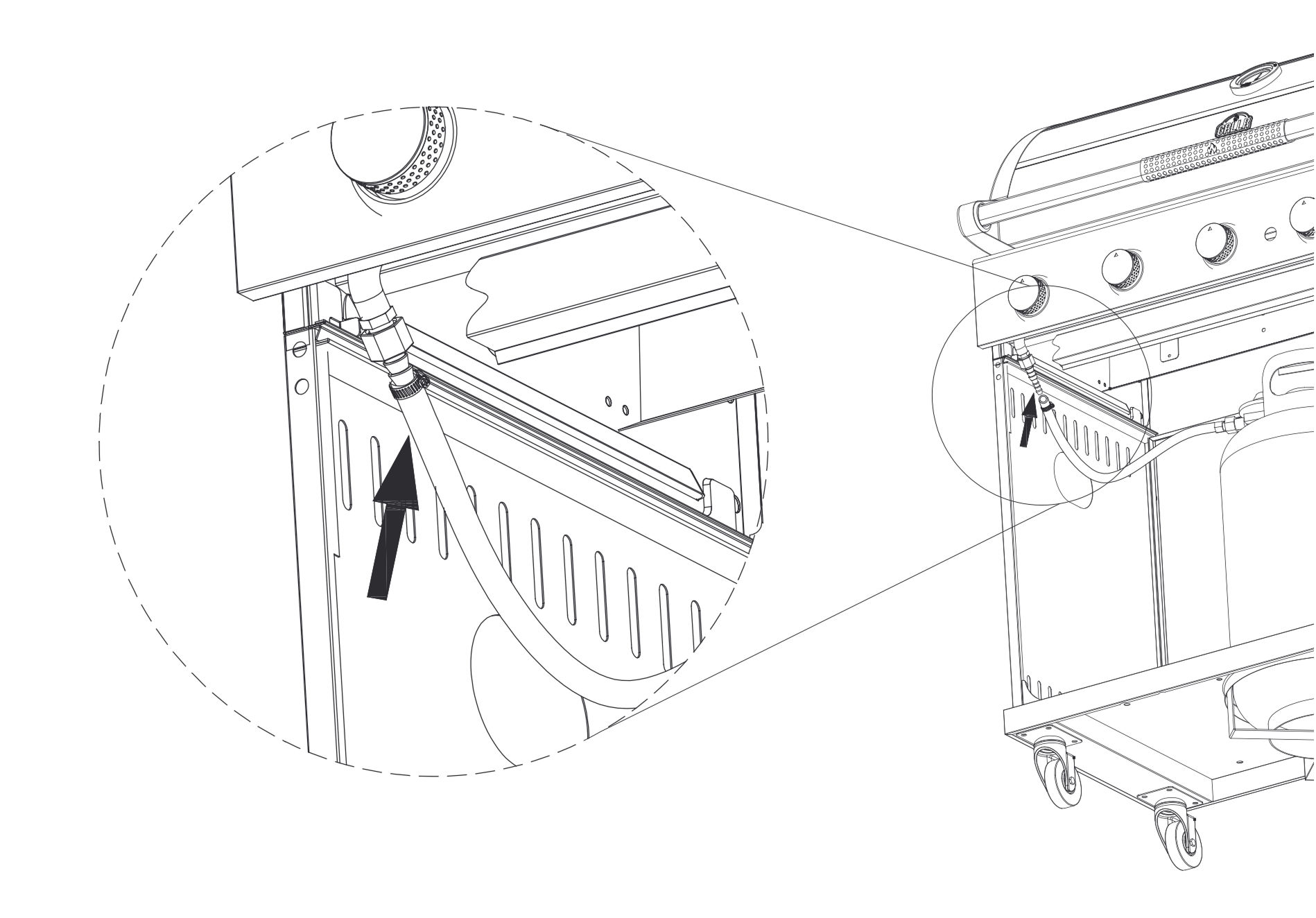 Connect the metal hose (5) to the main burner valve of the firebox assembly.
