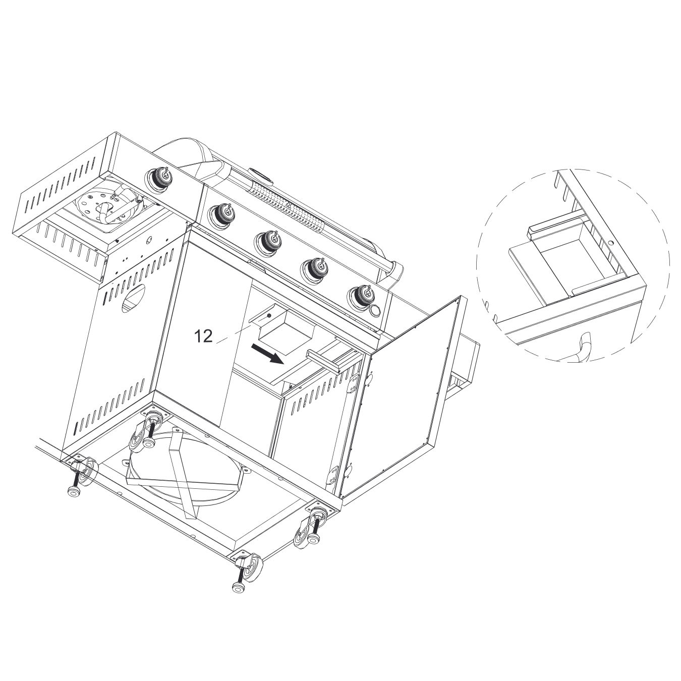 Slide the grease tray (4GT) into position below the firebox assembly.
