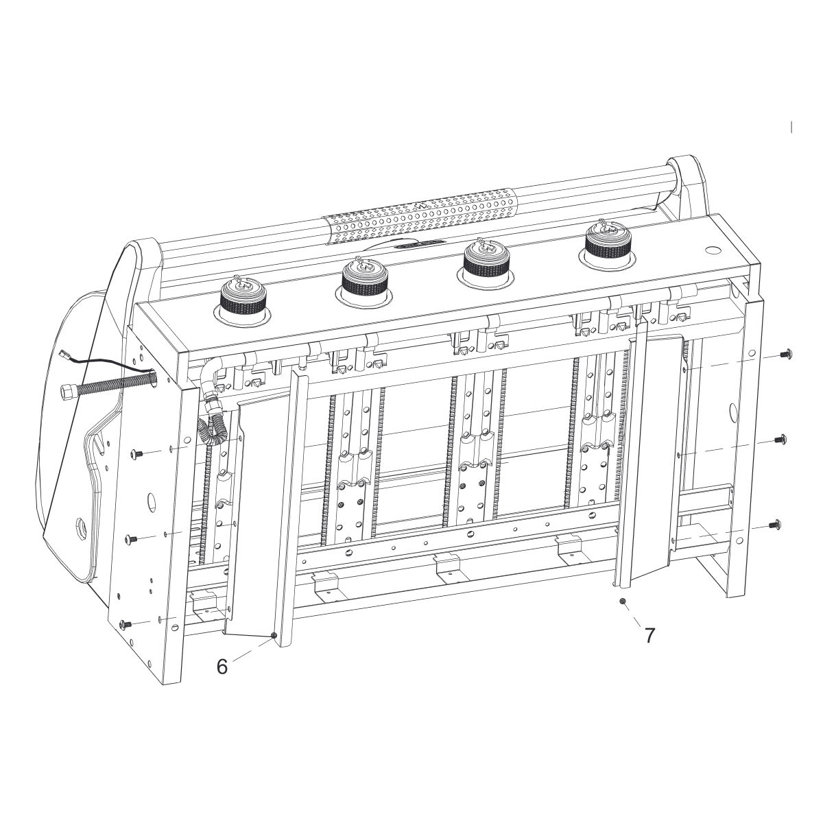 Fix the grease tray support left (6) and grease tray support right (7) to the underside of the firebox assembly (4B).