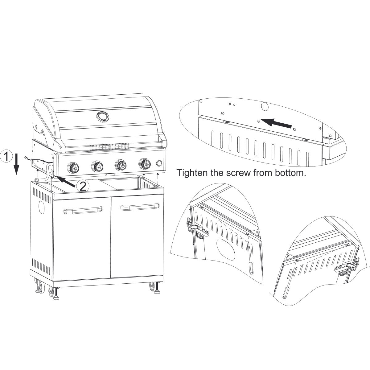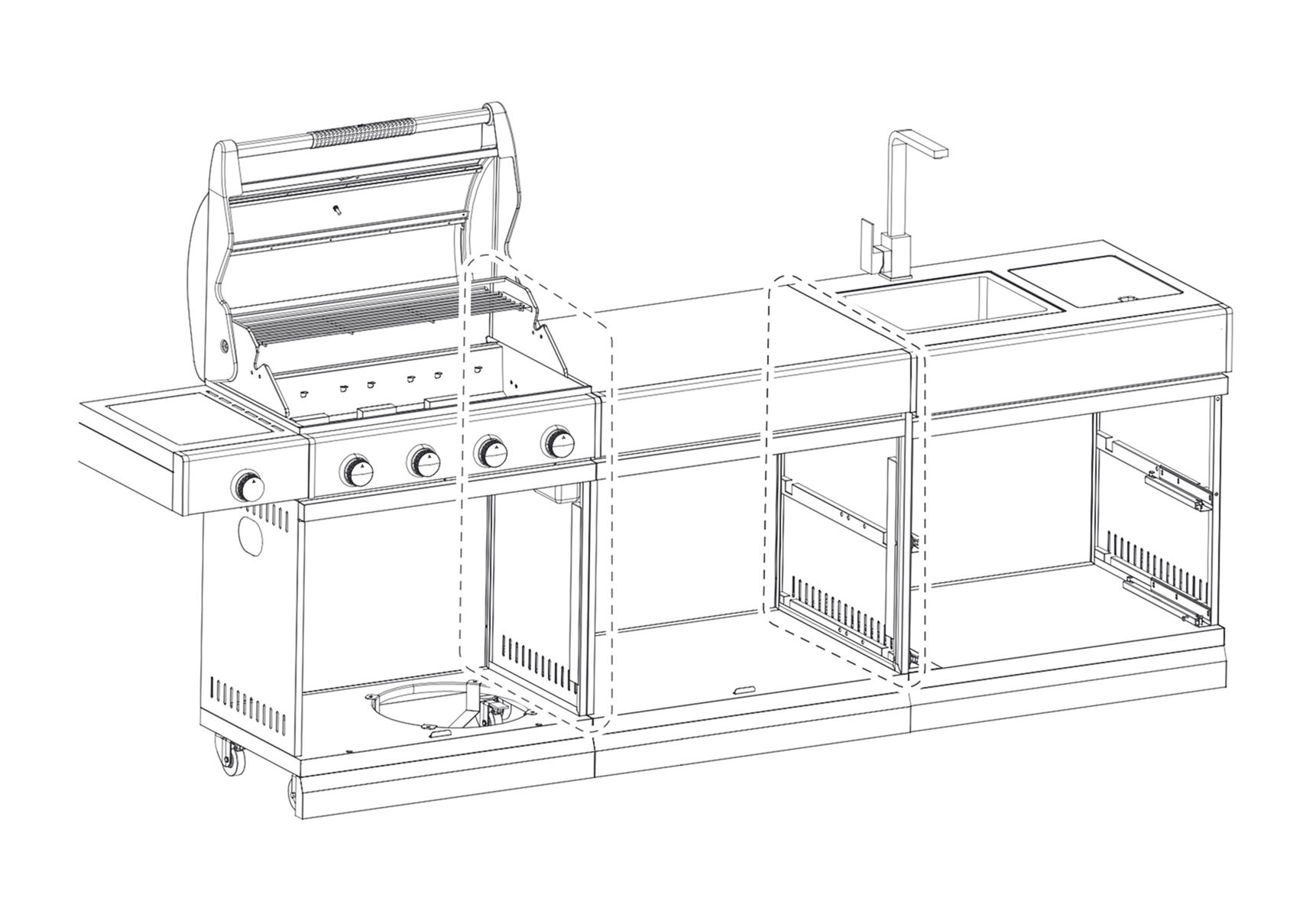 When incorporating The Prime Gas BBQ between the Connect Outdoor Kitchen Units, skip forward to step 23. When only one side shelf remains attached, skip the step belonging to the side-shelf that you are leaving out.