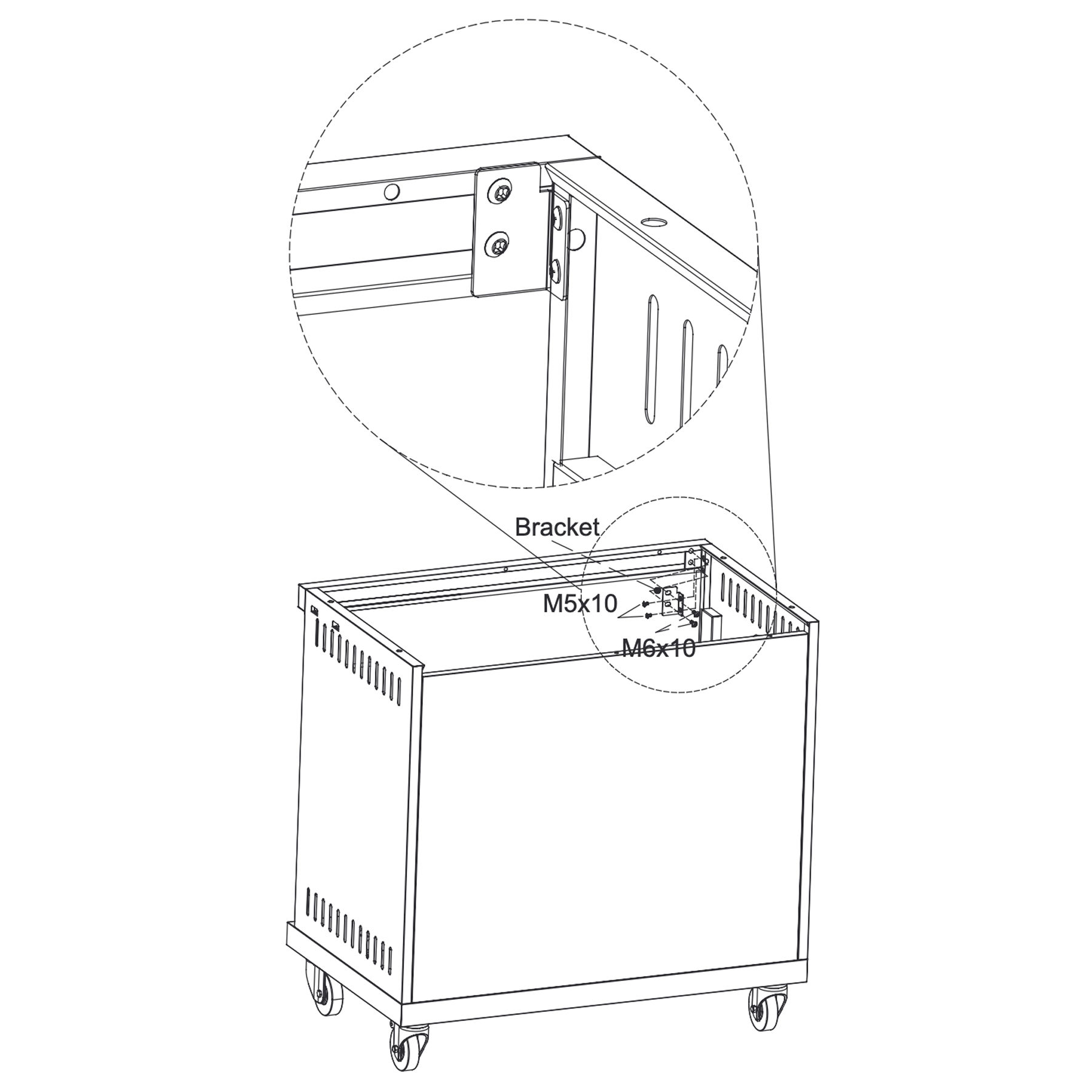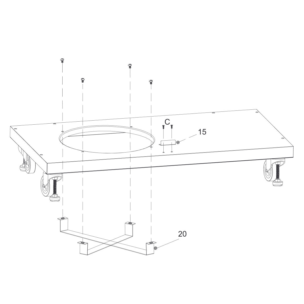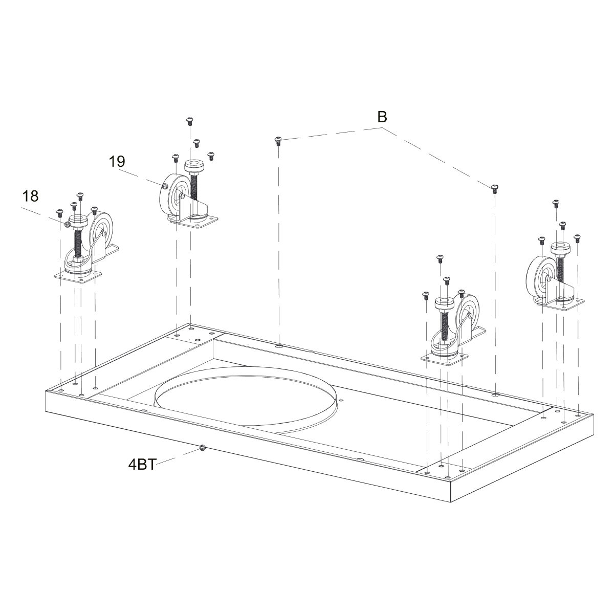 Attach 2 lock casters (18) and 2 casters (19) to the corners.