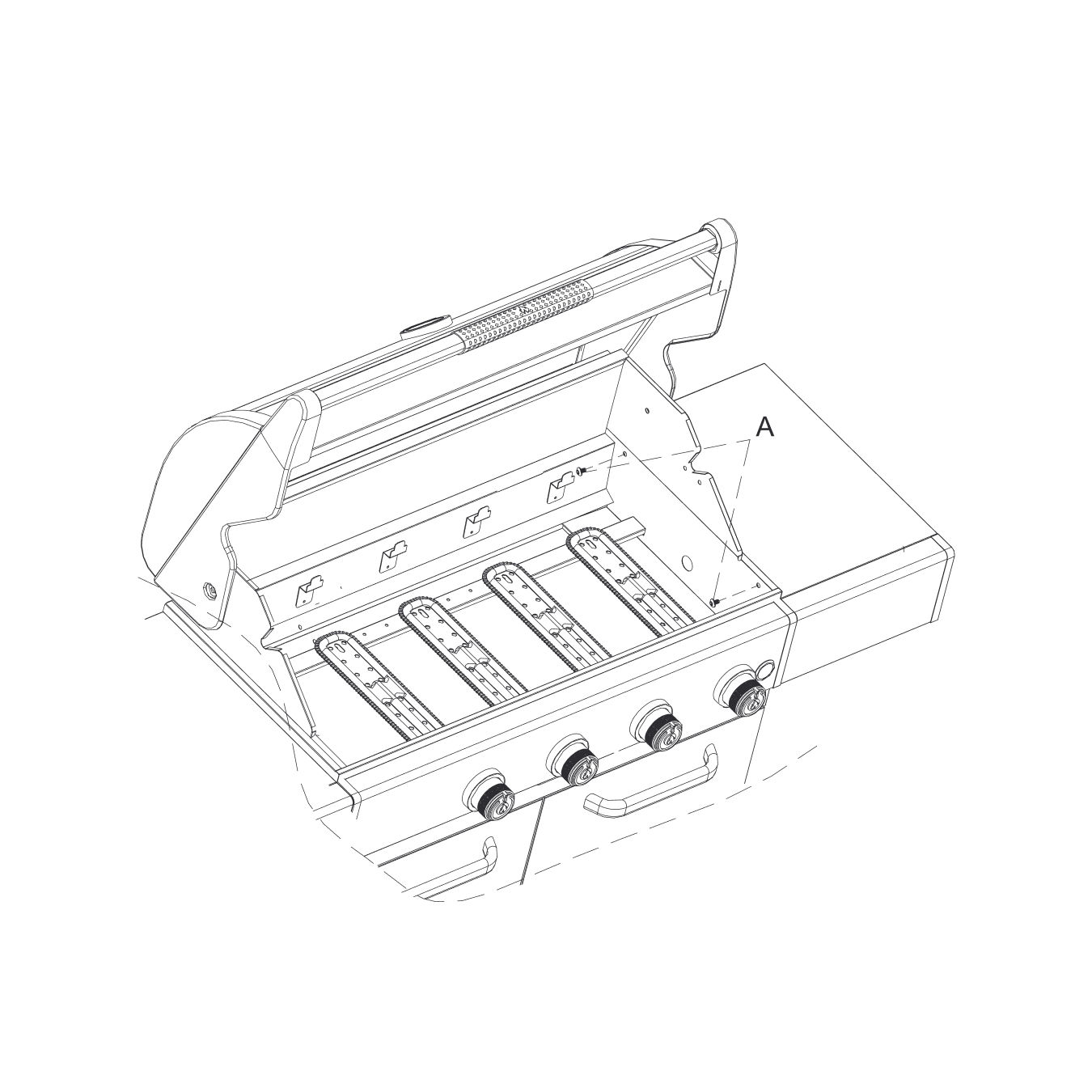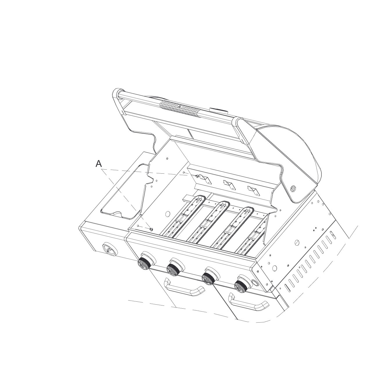 Insert the M6×10 screws (A) into the sides of the firebox.