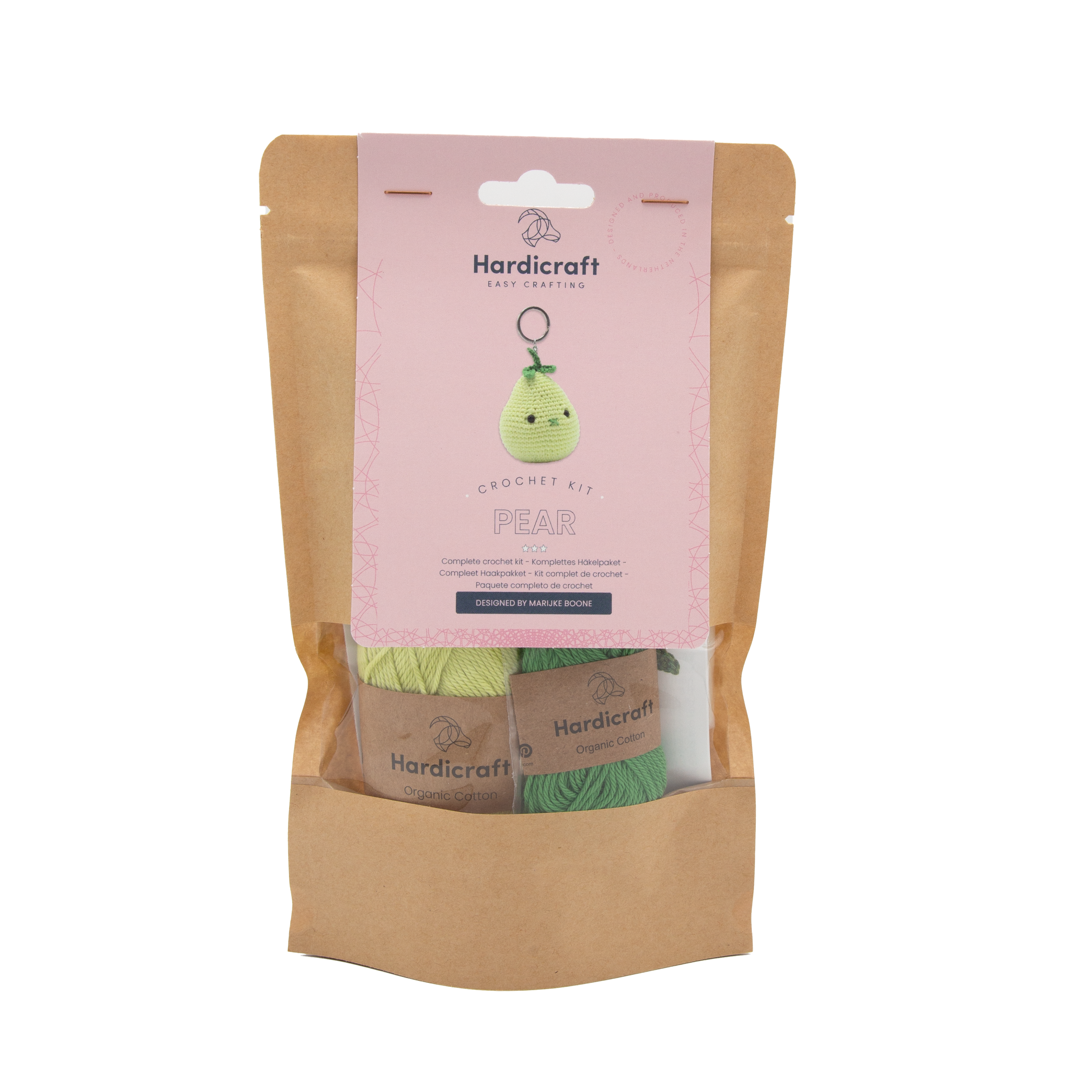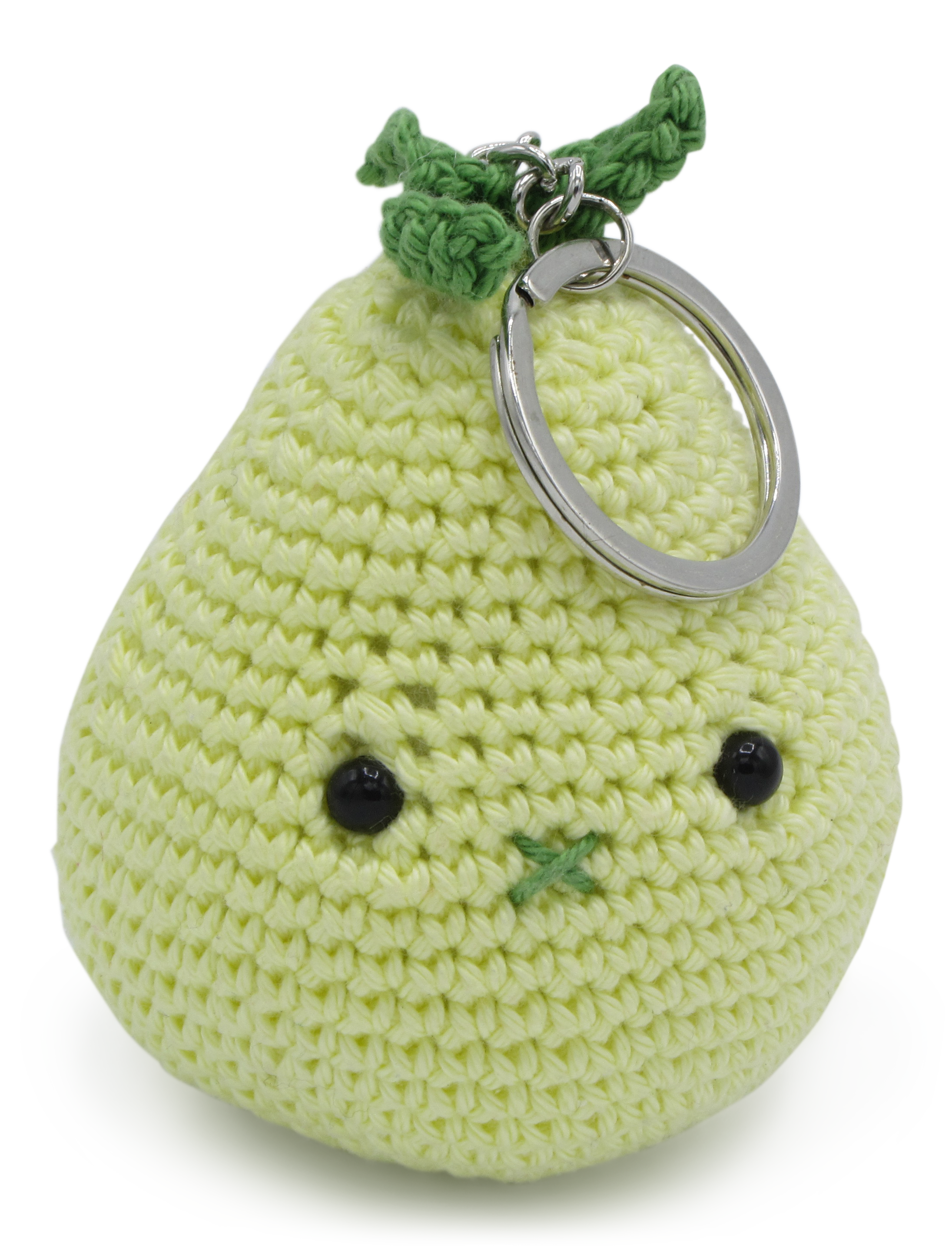 Pull the yarn end through the pear to the beginning and pull till the pear dents a little at the bottom and the top. This way your work becomes a real “pear-shape”.