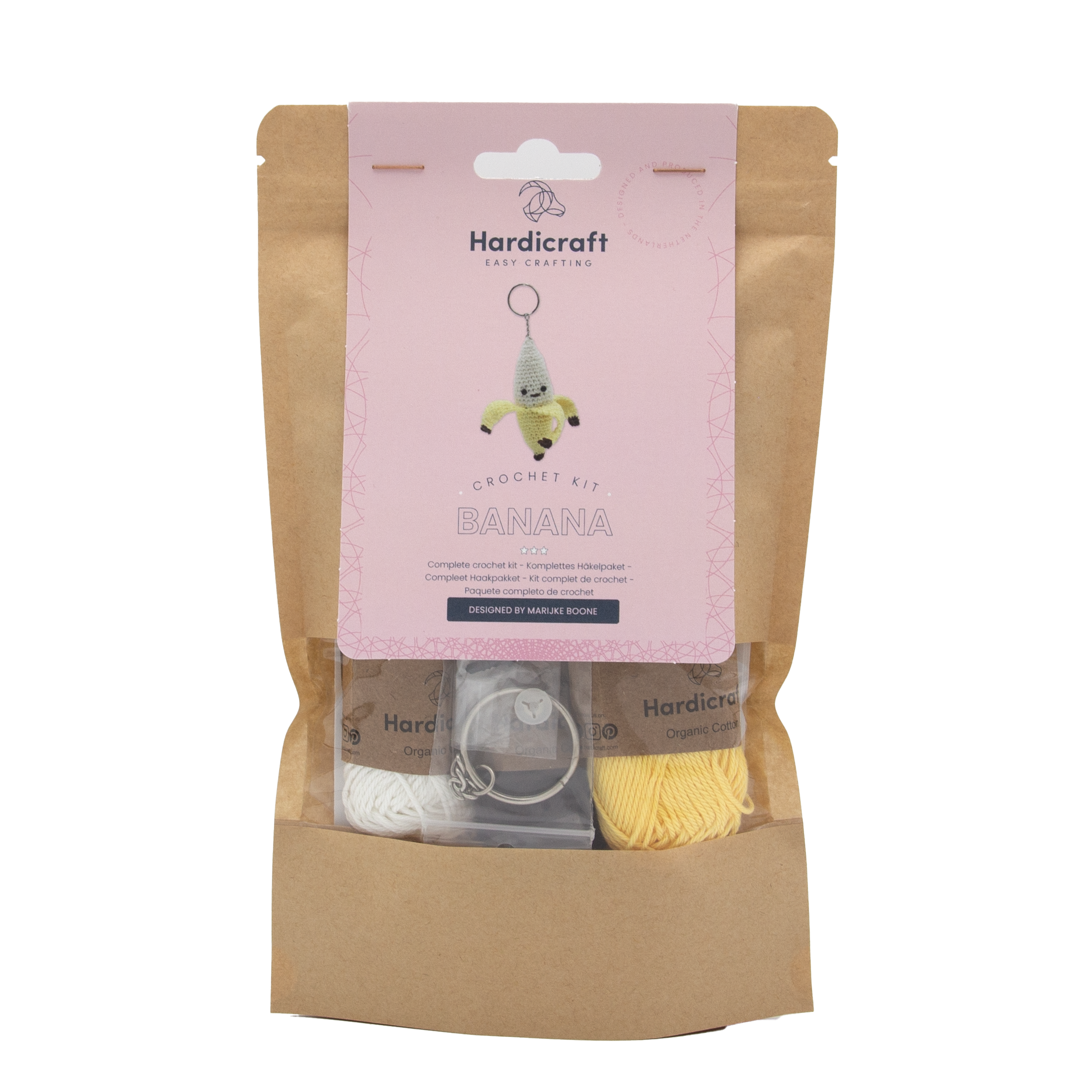 Fasten off. Pull the yarn through the remaining 6 st and pull tight. Use this yarn end to sew the chain of the key ring onto the top of the banana.