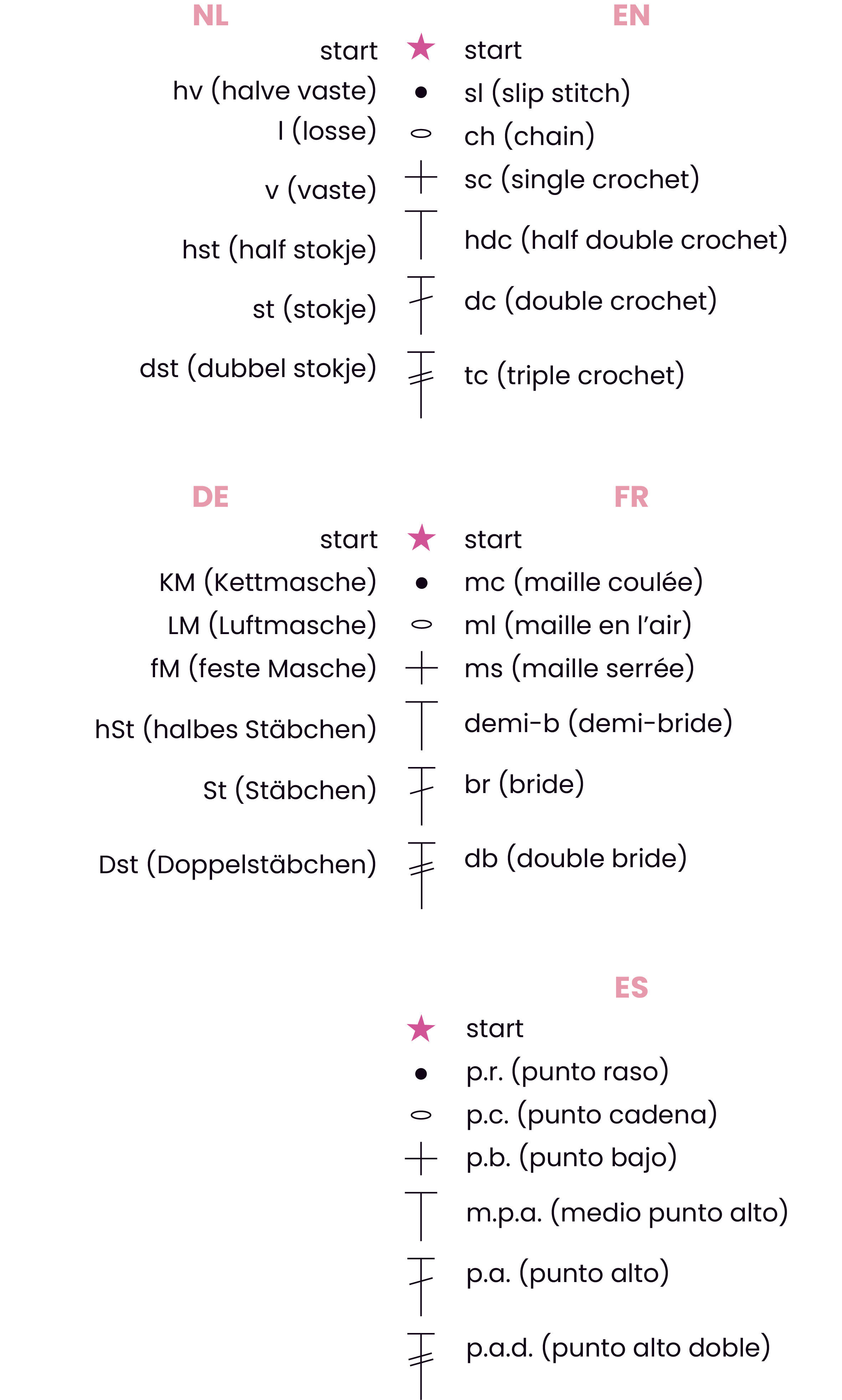 1. 6 sc into the 1st ch or into the magic ring, 1 sl into the 1st sc (= 6 sc)