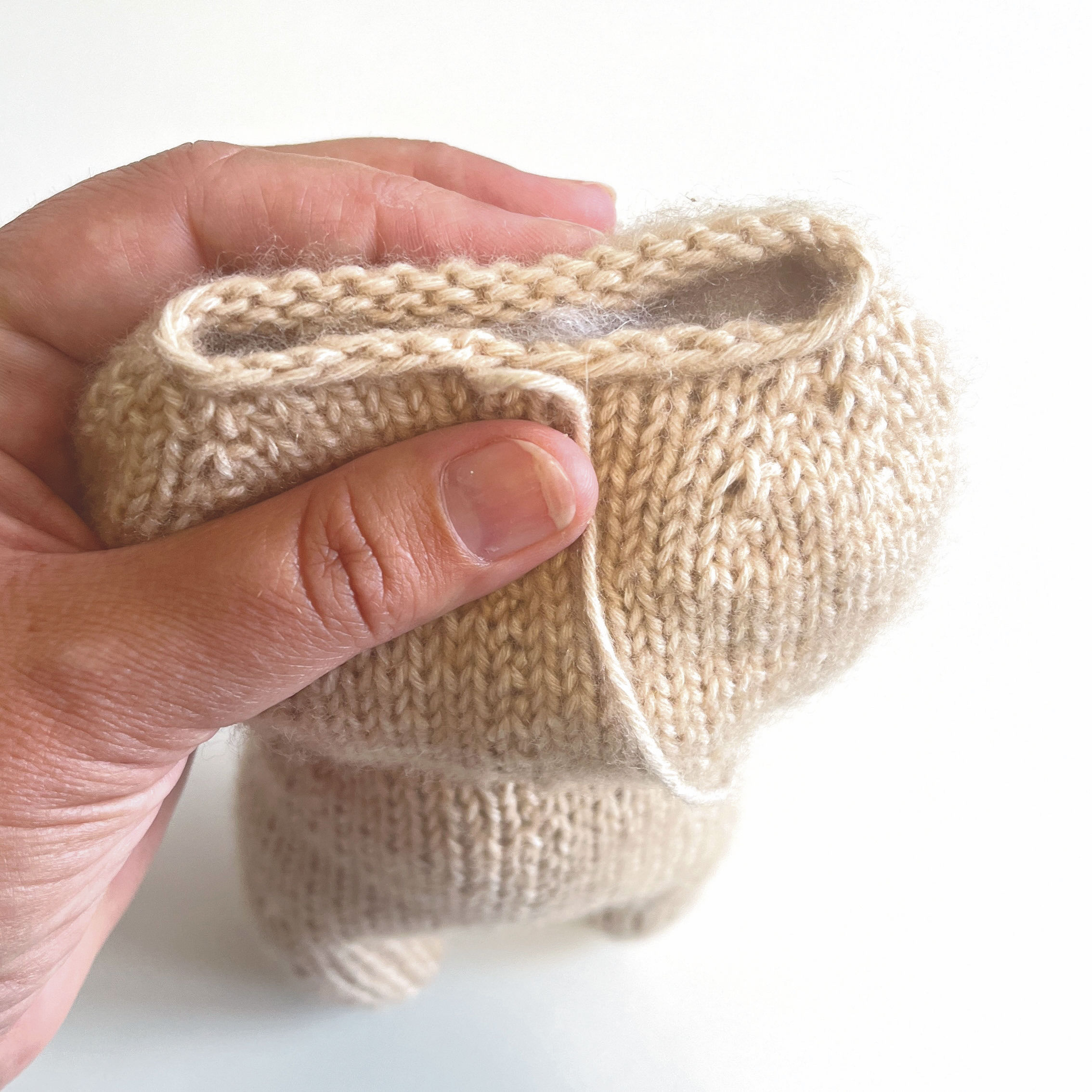 4. k6, 4x (k1, kfb), k12, 4x (kfb, k1), k6 (= 48 sts)