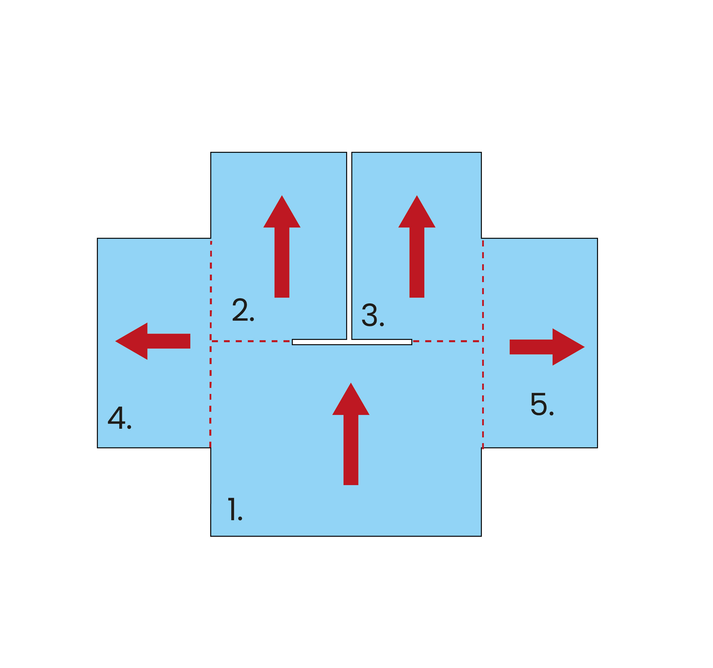 Repeat this on the other side of part 1 for the other sleeve. Fold your work in half and sew the sides of your sweater closed according to the instructions in the image. You can now put the sweater on and sew the back closed.