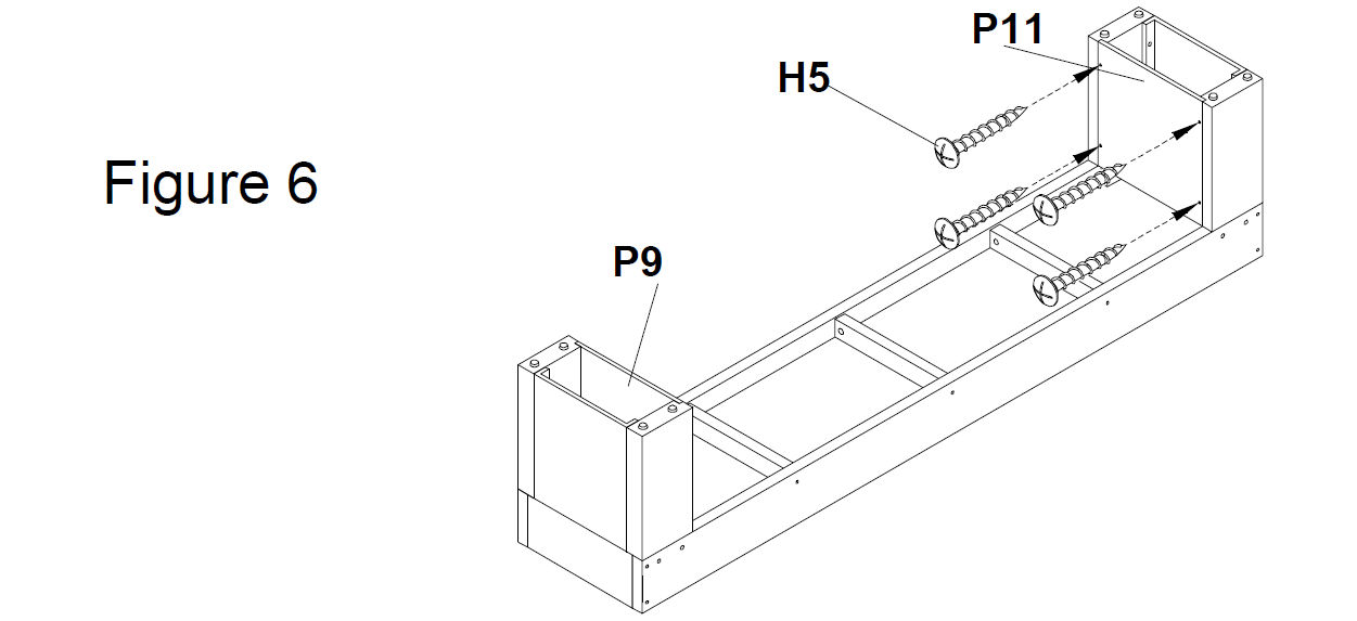 Then attach Stool Leg Panels B (P11) and use 25mm screws (H5) to secure them. (see Figure 6)