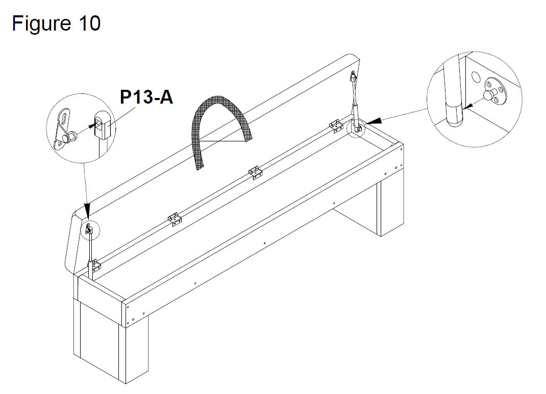 To attach the Hydraulic strut (P13) see Figures 9-10.