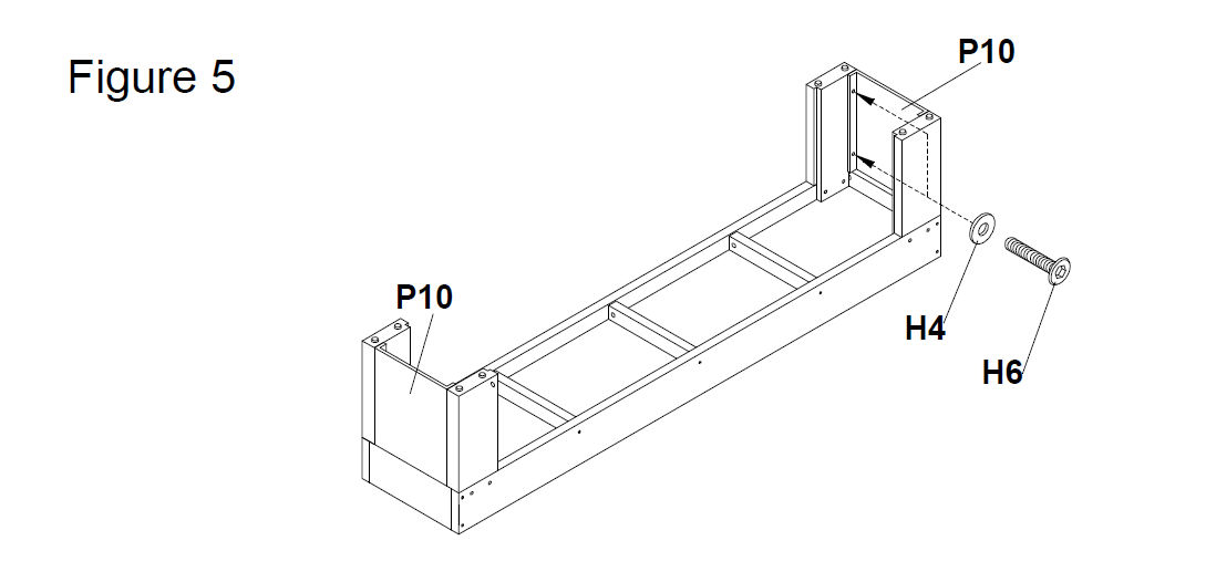 Attach Stool Leg Panels A (P10) and secure them using 1/4" Washers(H4) and 1/4" x 1"Bolt (H6)(see Figure 5)