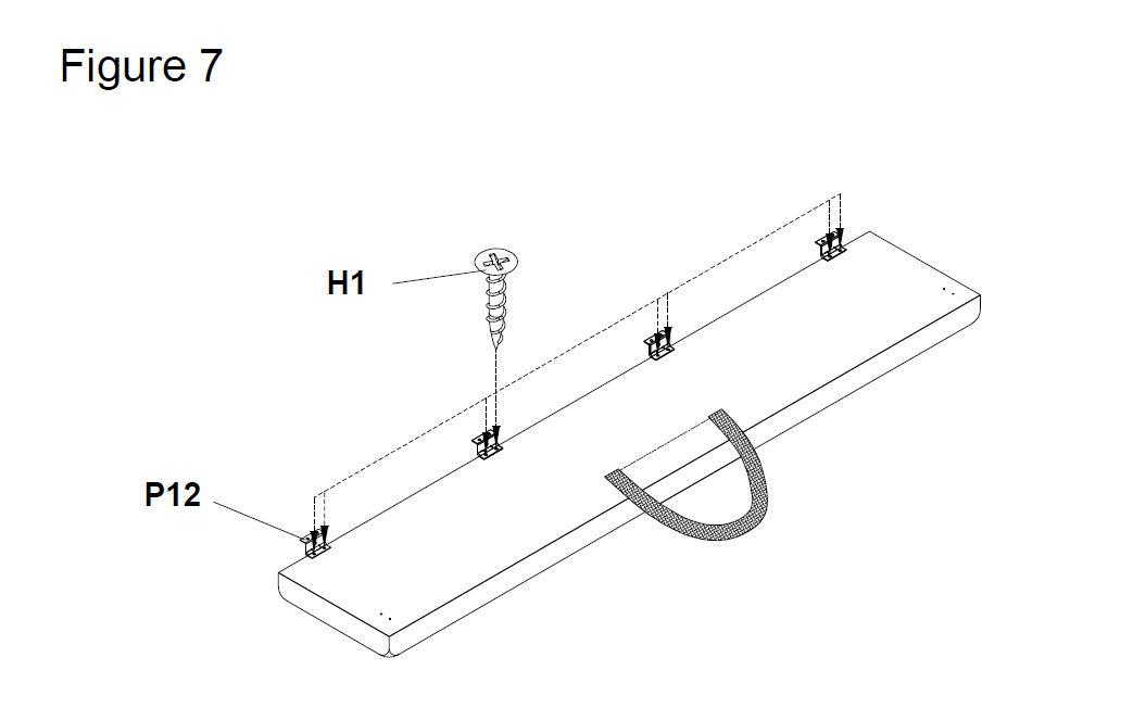 Fix the hinges (P12) onto the inside of the seat panel (P1) using 15mm screws (H1) (See Figure 7)