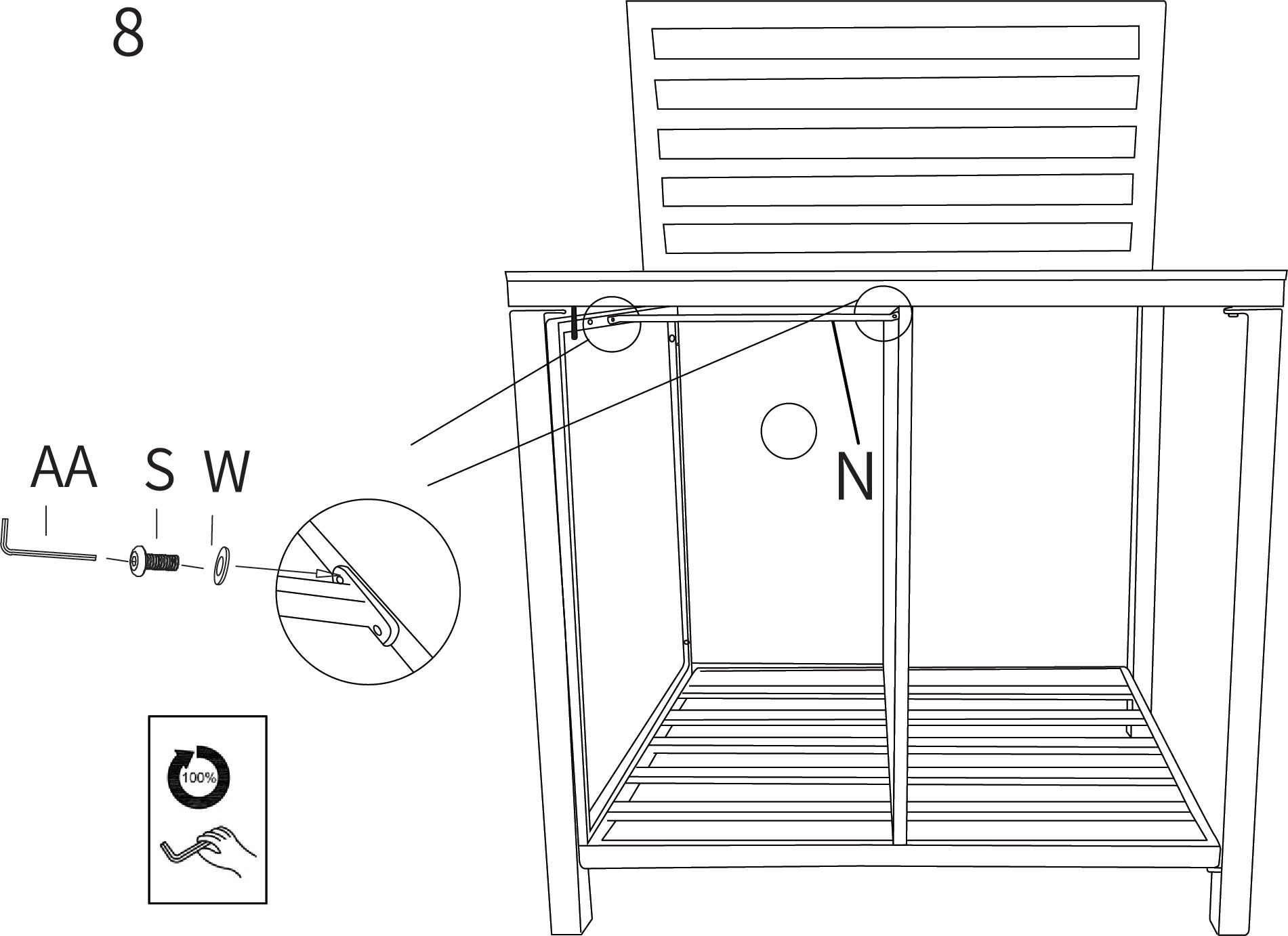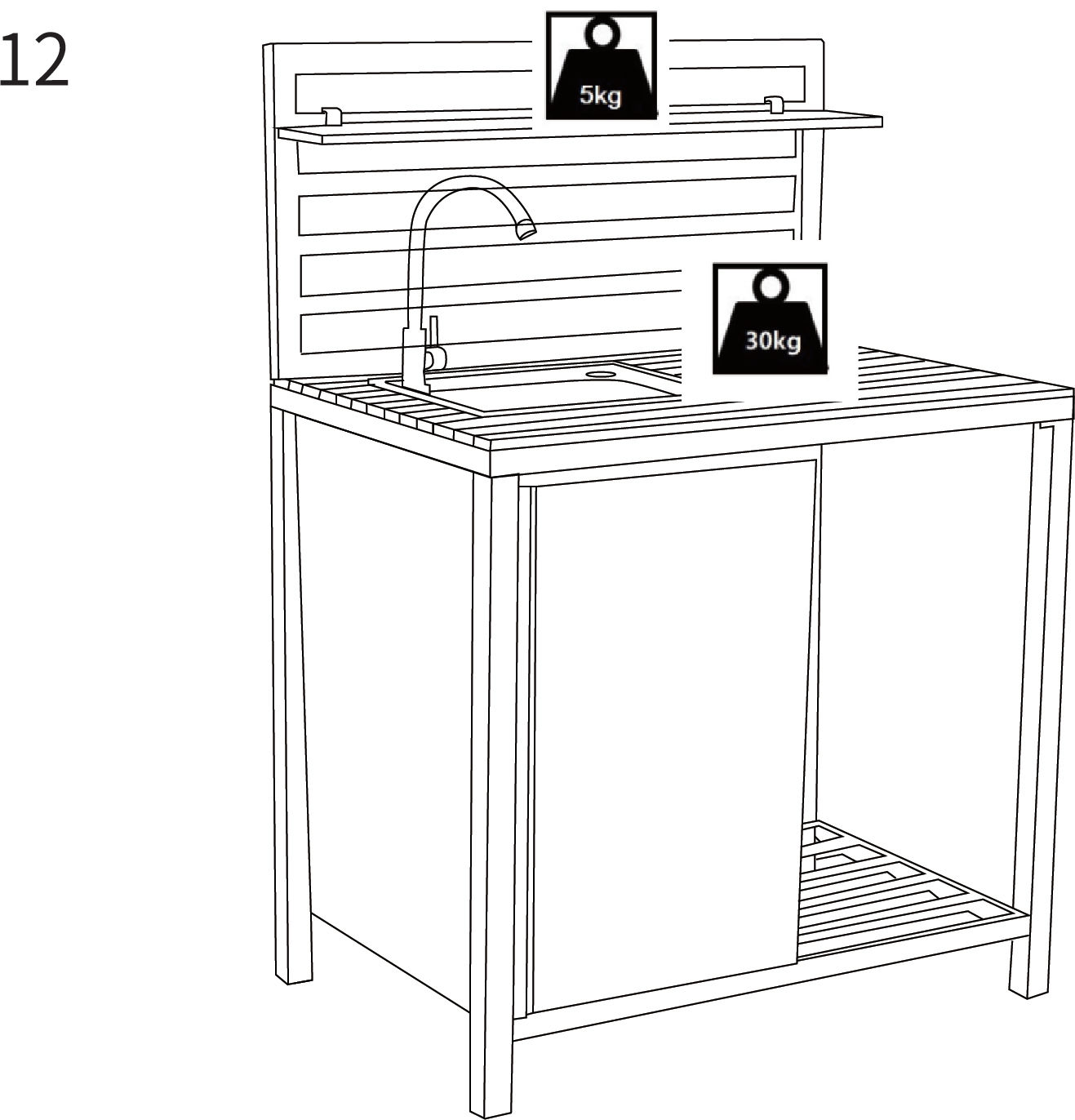Instructions by monstershop Aluminium Outdoor Kitchen Sink Unit214822 Product InformationAluminium Garden Kitchen Sink UnitThe Aluminium Garden Sink Unit is a smart, stylish addition to any outdoor kitchen, finished in contemporary anthracite grey. It features a stainless steel sink with a cold water tap, integrated plug strainer, and flexible waste hose for easy drainage. A built-in storage cupboard keeps essentials neatly tucked away, while the adjustable top shelf offers added versatility. Designed to work seamlessly with the matching corner unit and table unit, it’s perfect for creating a custom modular outdoor cooking space.