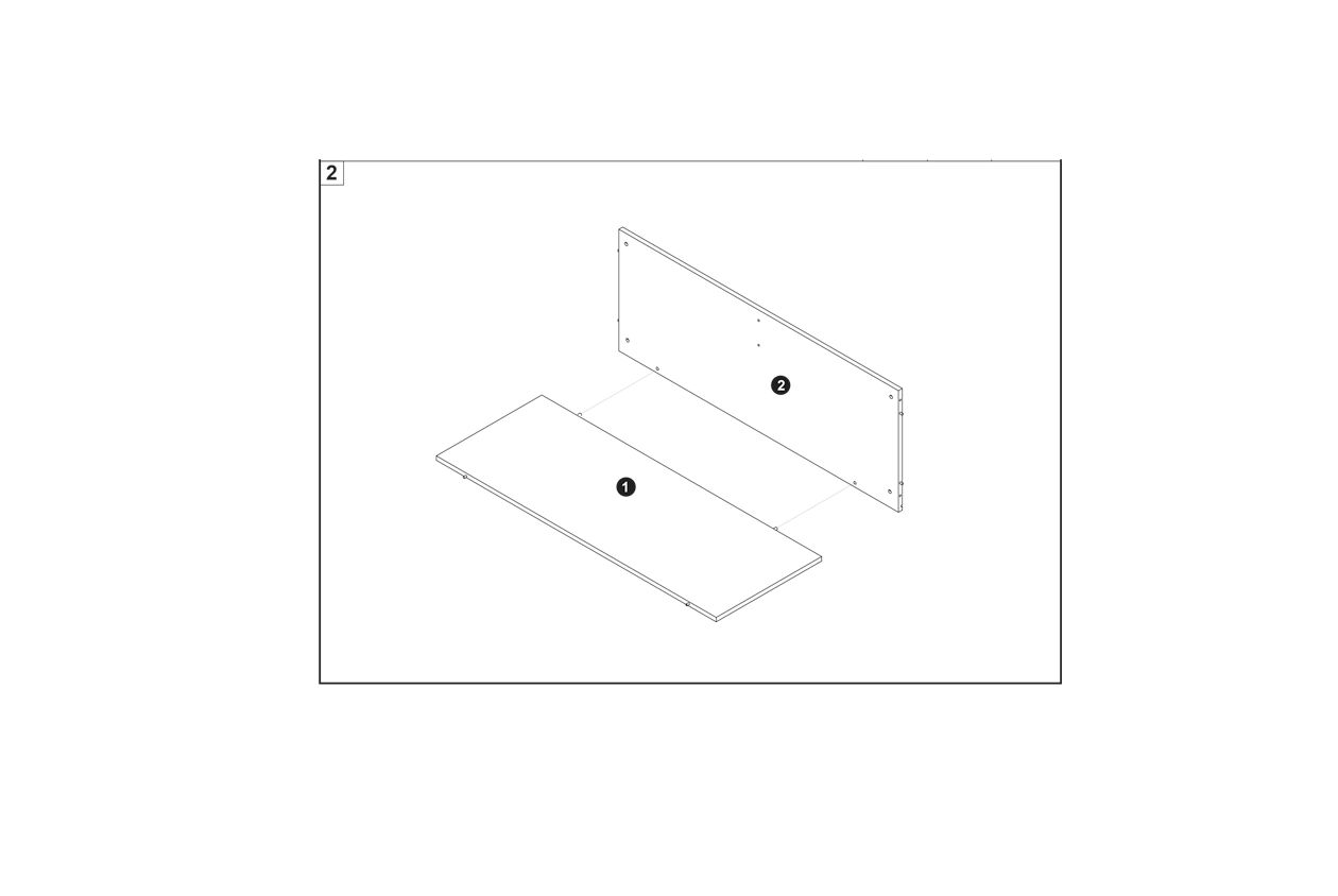 Align the back panel (2) vertically with the base panel (1) as shown in the diagram.