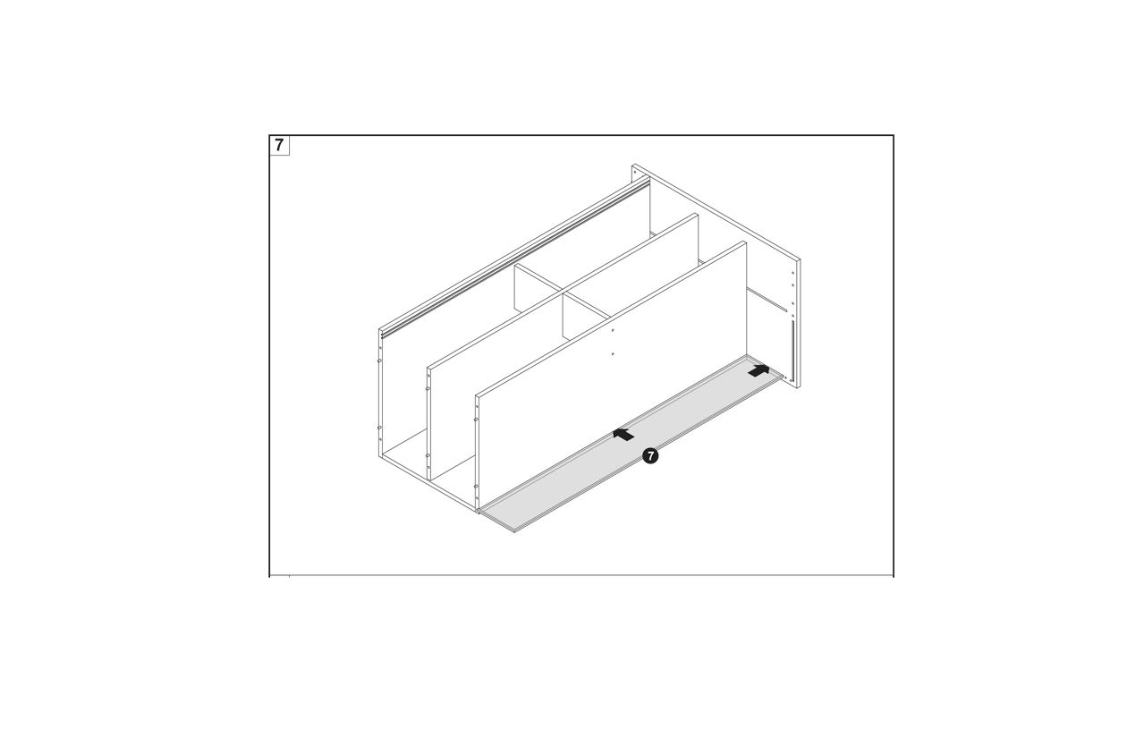 Secure the base panel to the structure using the appropriate connector screws and cam locks.
