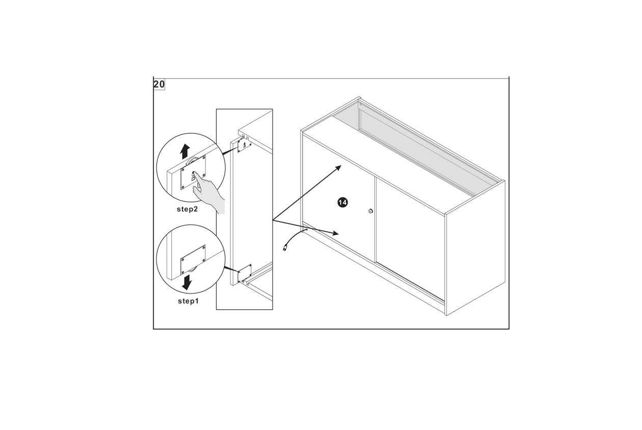 Use cam locks to fasten the panels securely, checking for stability and alignment.