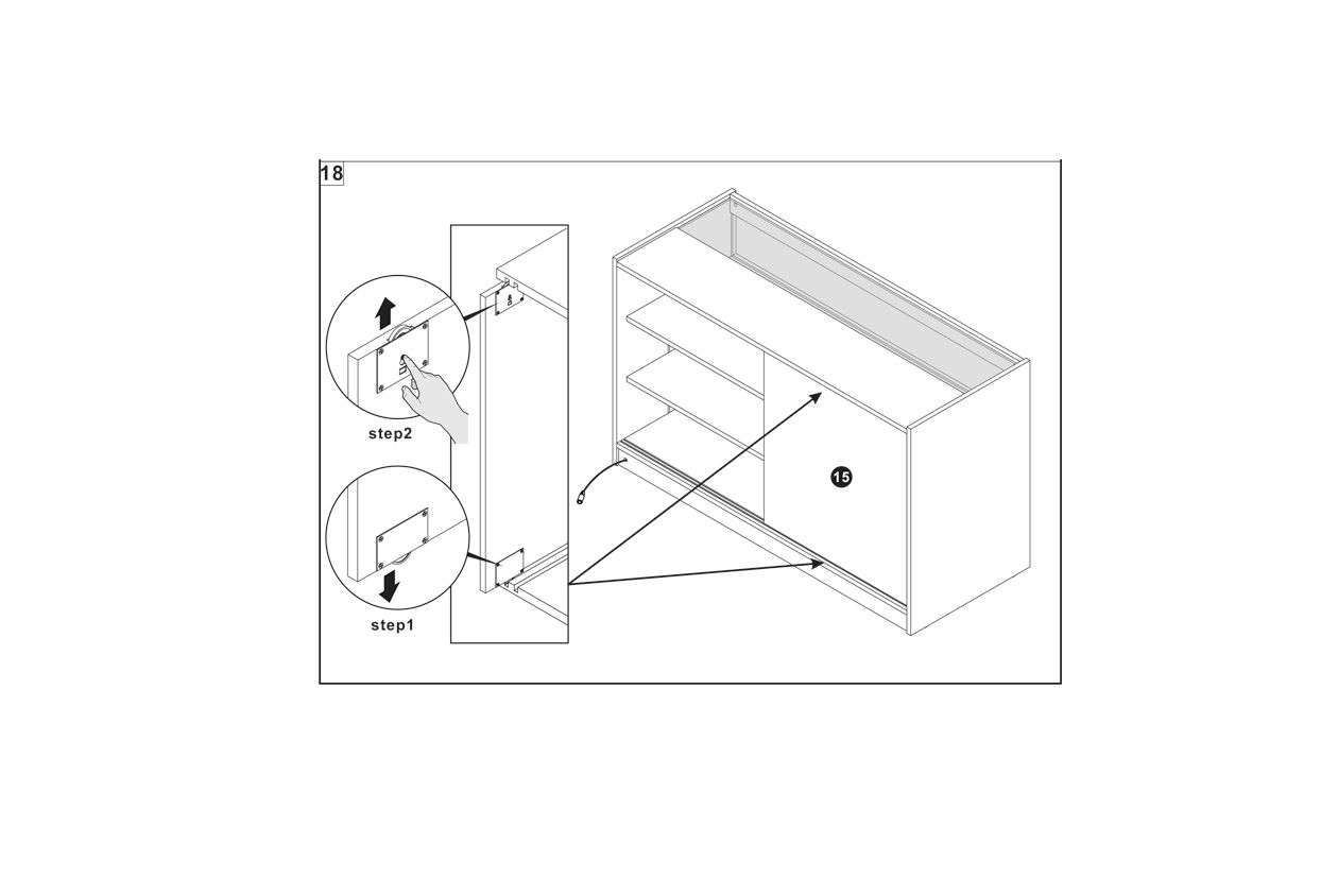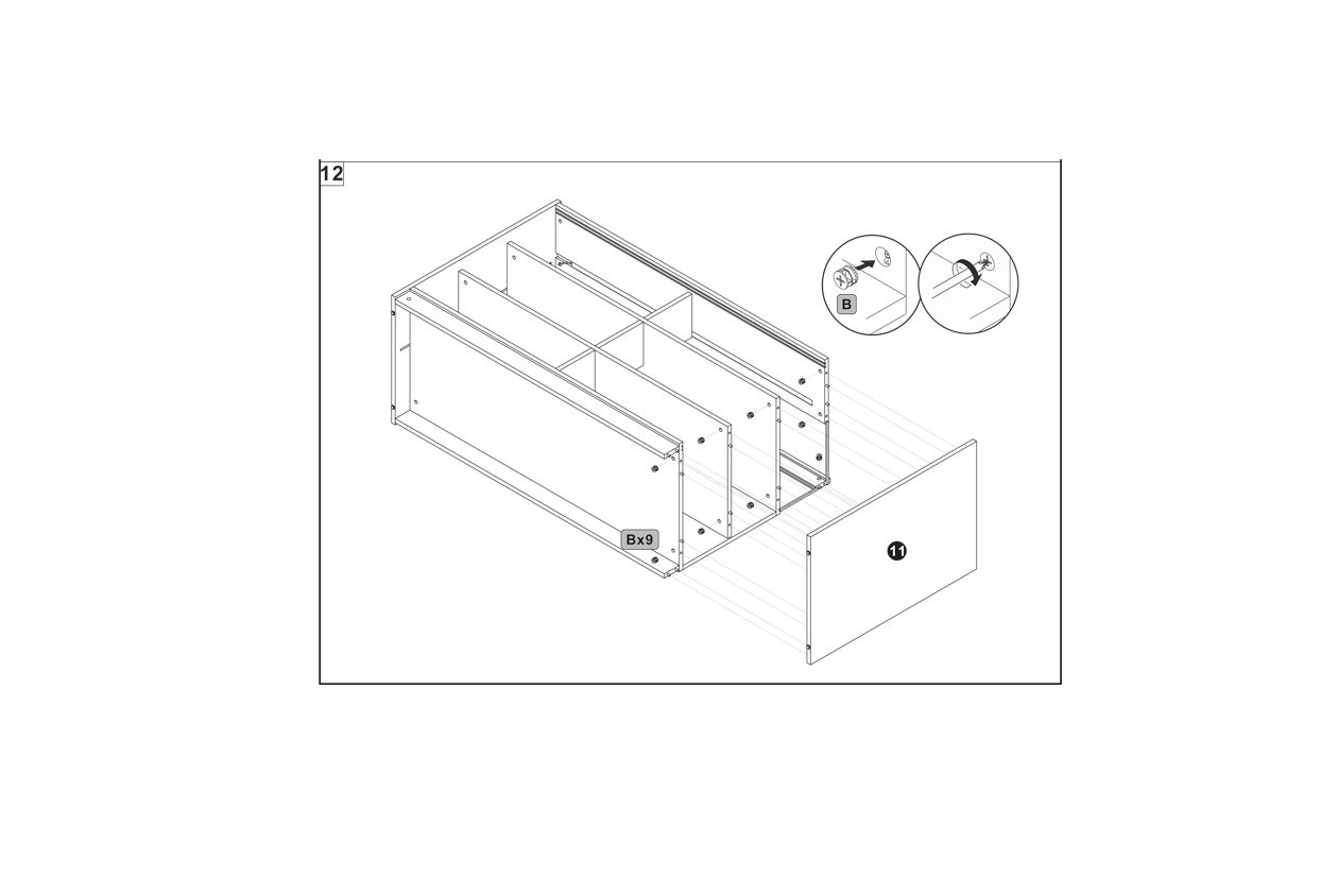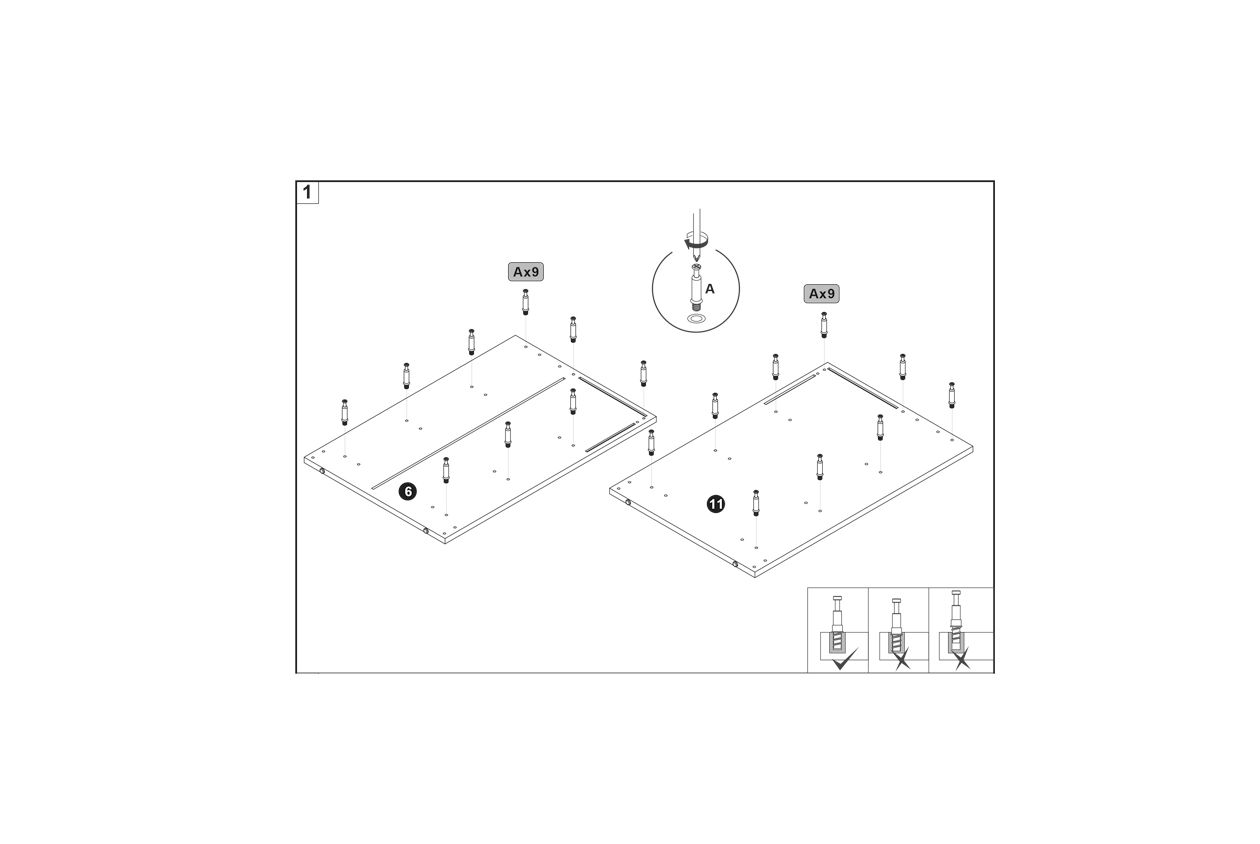 Insert the hardware A into the pre-drilled holes on both panels 6 and 11.