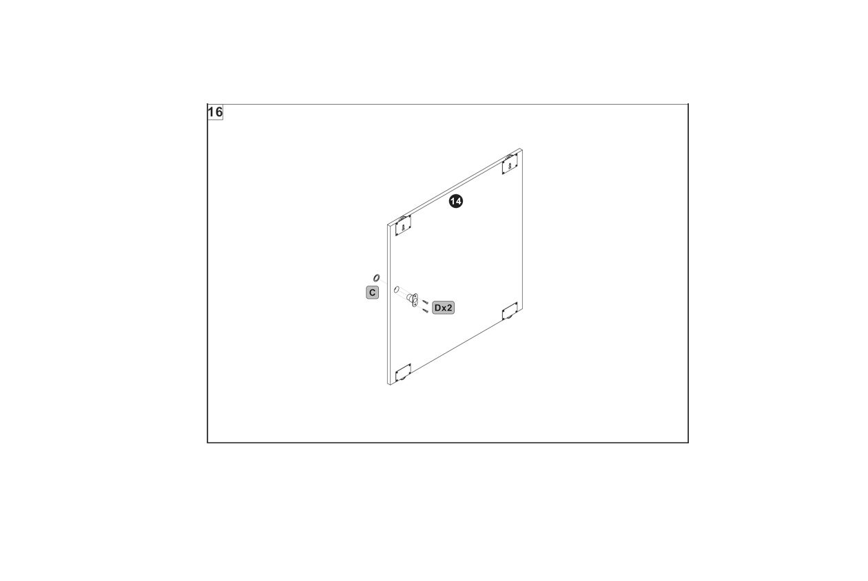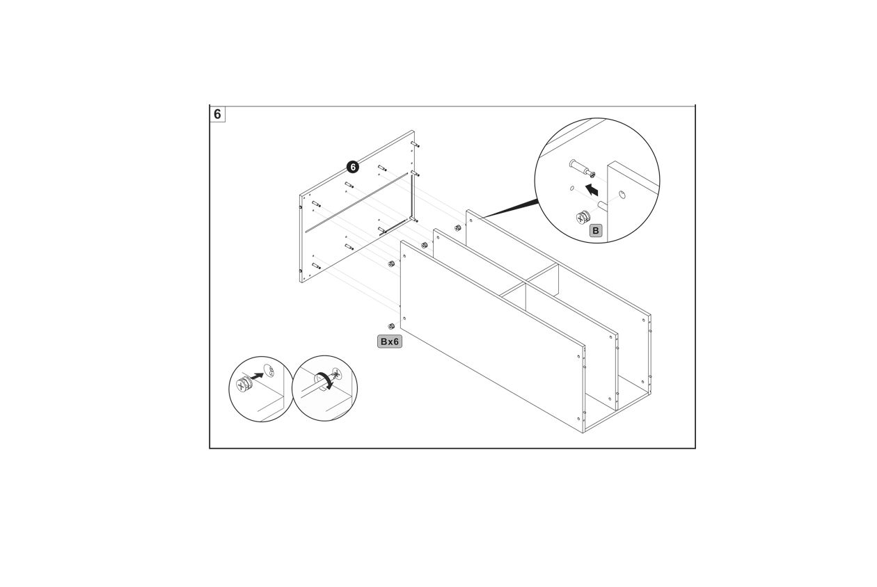 Insert connector screws (labeled as B) into the pre-drilled holes on the back panel.