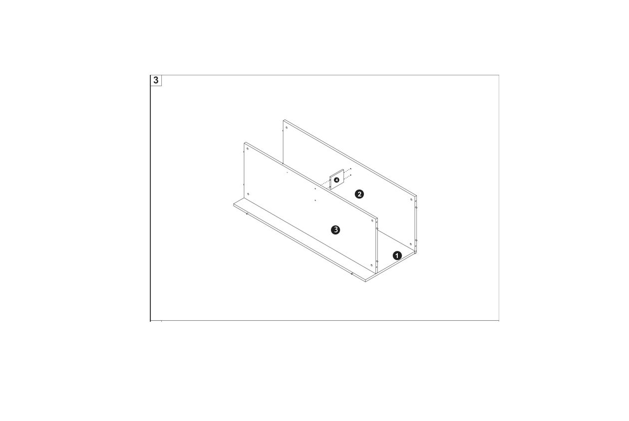 Secure the back panel (3) to the side panels, ensuring all edges are flush and aligned.