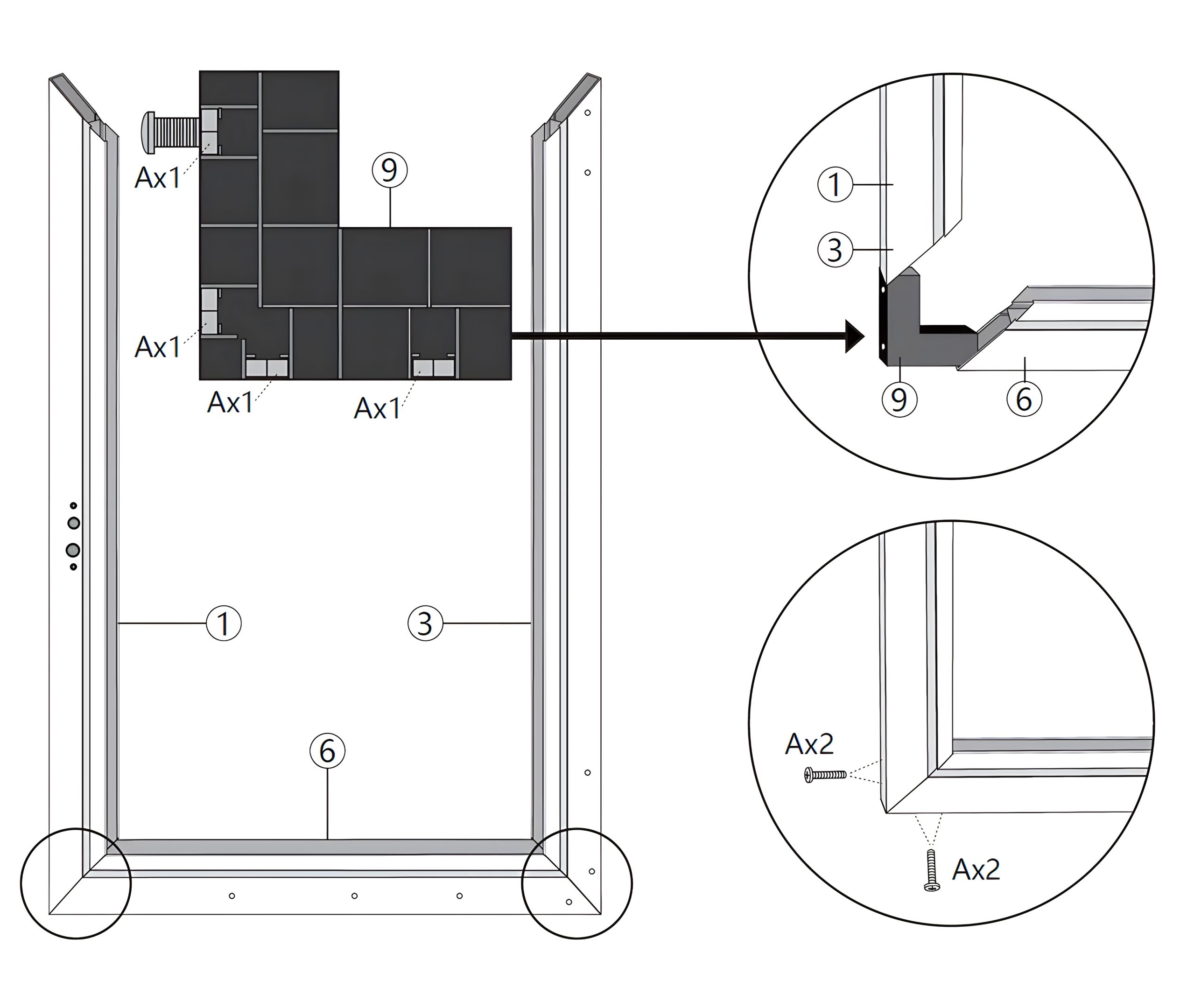 Use the Corner Connectors (Part 9) to secure the corners where the top beam meets the side beams (Parts 1 and 3).