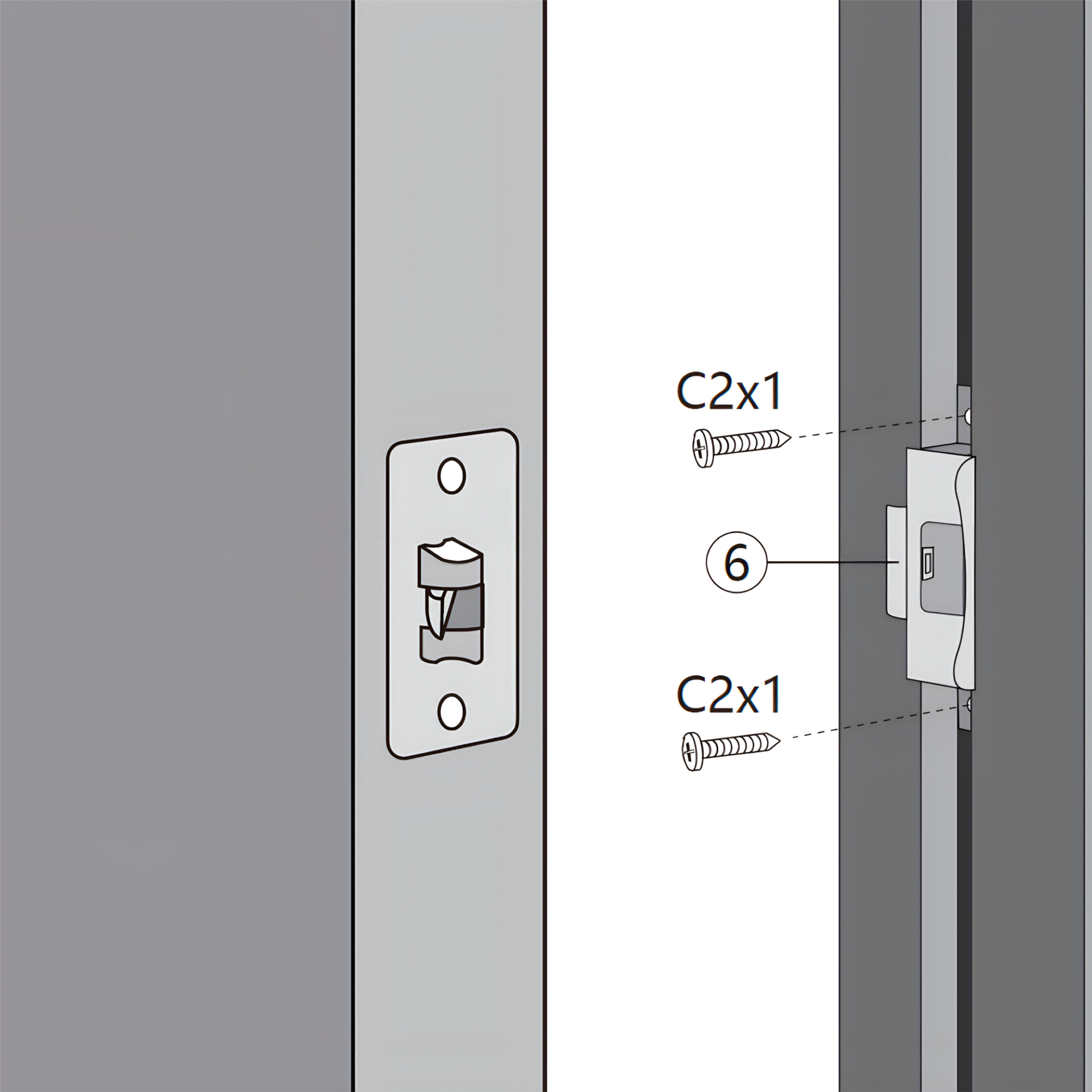 Position the Latch Fitting (Lock Part 6) on the Fence Post. Make sure to pre-drill holes to align latch fitting to correct height..