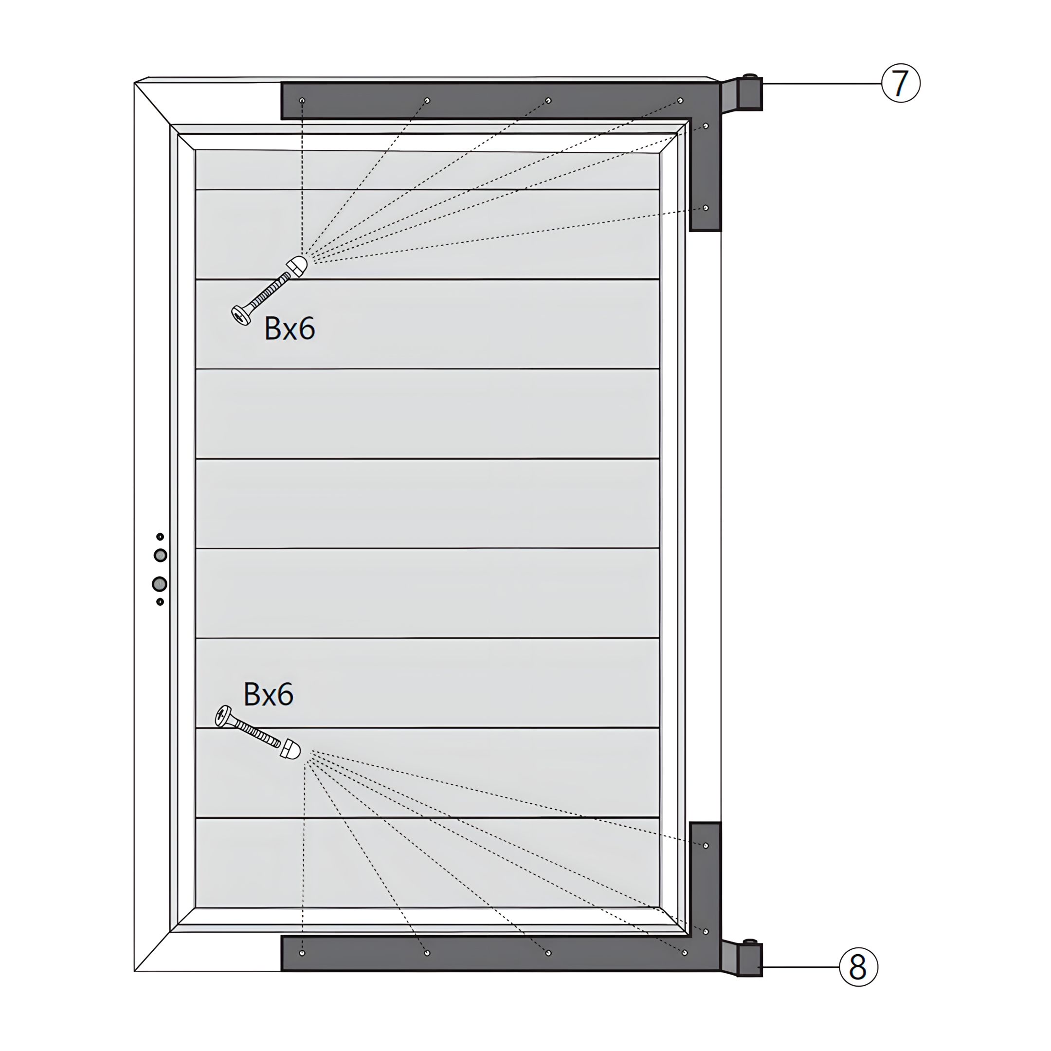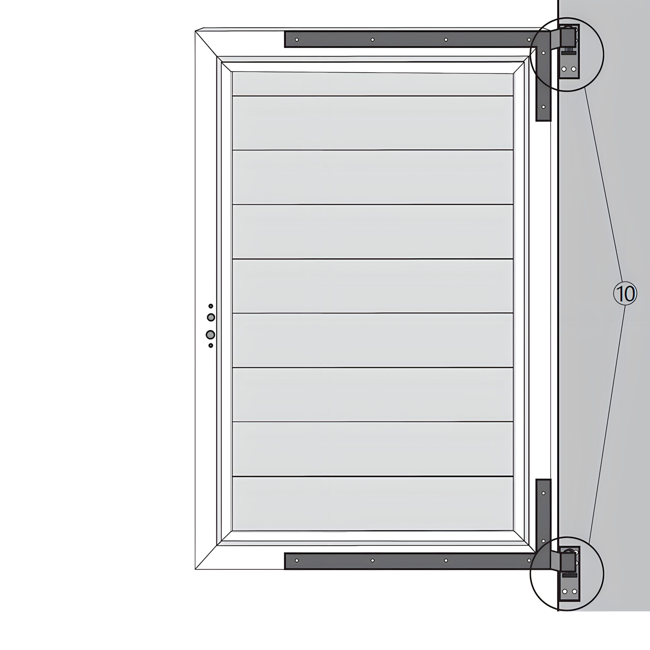 Position the Gate Securing Fittings (Part 10) at the top and bottom corners of the gate frame and secure to the LED Aluminium Posts.
