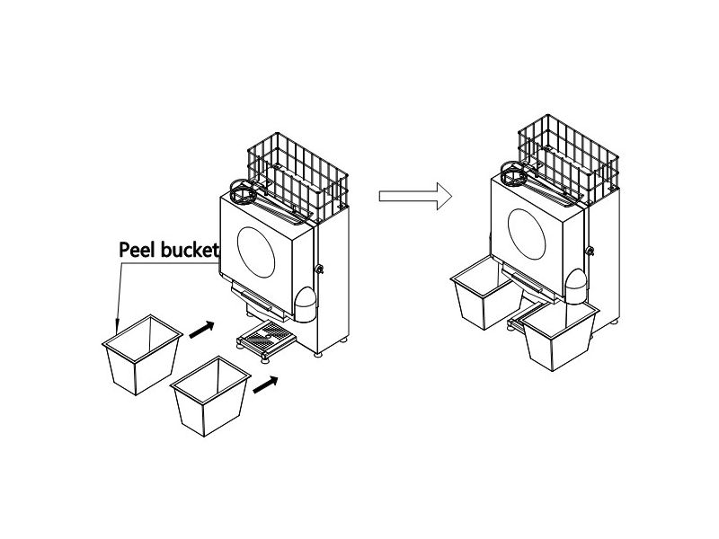 Put the fruit peel buckets in the two sides of the bottom of the machine.
