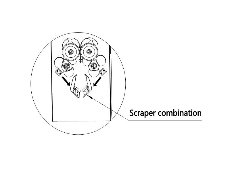 In turn take down the knife combination (be careful as the blade is sharp and will cut if not cautious), two groups of scraper combinations, unscrew the four screws, take down the two groups of concave and convex balls (each group of the concave and convex balls needs to be taken out at the same time).