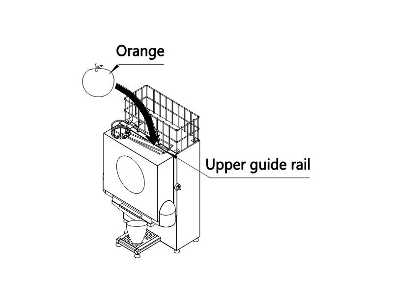 Press the start switch so the Juicer begins to feed the oranges into the juicing mechanism. Once the juicer has completed it will release the juice at which point the fruit peel will be automatically separated into the fruit peel bucket.