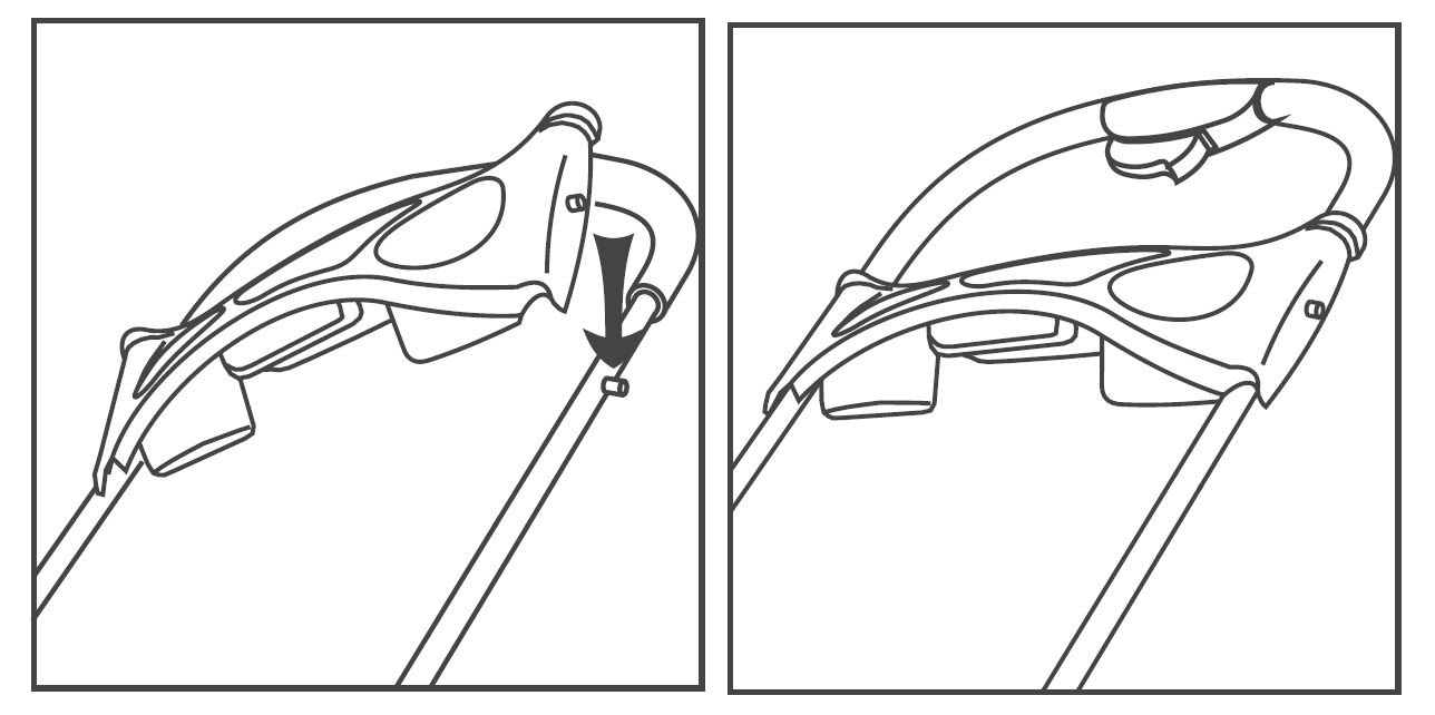 Match the slot on the bottom of the cup holder with the peg on the handle tube. Push the holder downward until it snaps securely into position.