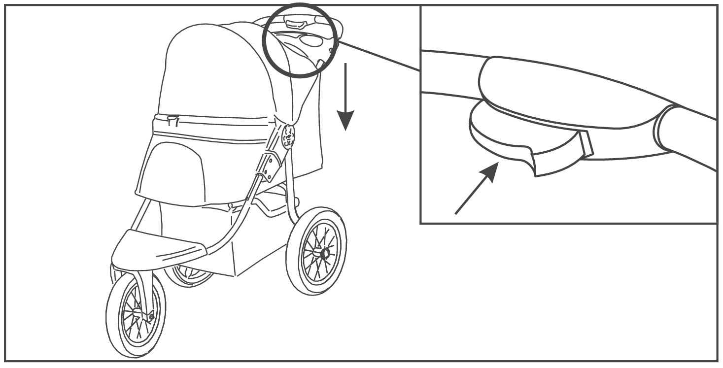 Then, press the folding button on the handle and collapse the stroller.