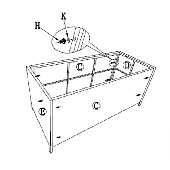 Place the two side panels (C) parallel to each other.